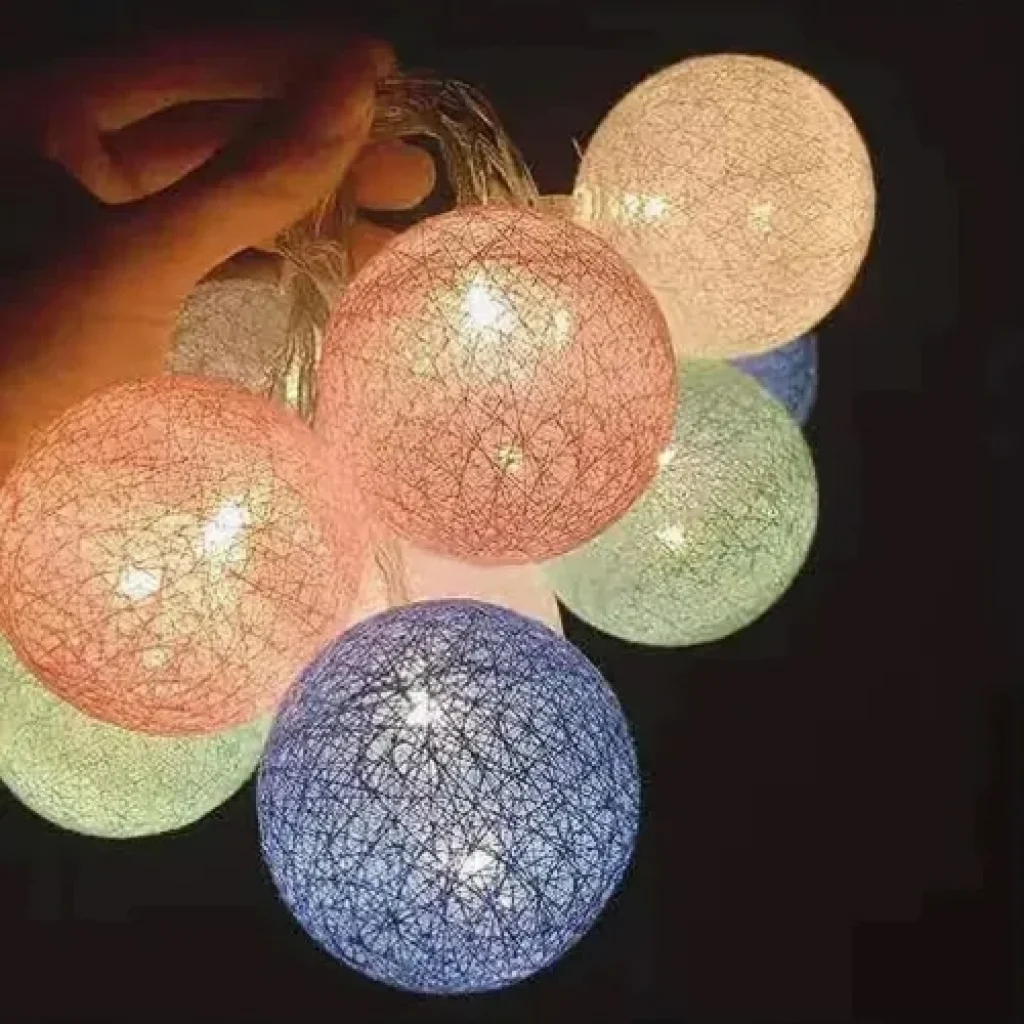 2m 10 LED Renkli Top Lamba: Büyük Figürler, Yumuşak Gün Işığı AmbiyansıMekânınıza hem renk hem de sıcaklık katın! 2 metre uzunluğunda, 10 adet büyük boy (6 cm) Renkli Top figürü içeren bu dekoratif zincir, yumuşak Gün Işığı (Sıcak Sarı) aydınlatmasıyla samimi bir atmosfer yaratır. Pilli ve 2 kademeli fonksiyonu sayesinde, kablo karmaşası olmadan parlaklık seviyesini dilediğinizce ayarlayarak dekorasyonunuzu tamamlayabilirsiniz.✨ Temel ÖzelliklerFigür Tipi: Renkli Toplar (6 cm çapında, büyük ve dikkat çekici).Işık Rengi: Gün Işığı (Sıcak Sarı/Warm Light – Huzurlu ambiyans).Boyut ve Adet: 2 Metre uzunluk, 10 adet LED.Fonksiyon: 2 Kademeli Parlaklık veya Işık Modu (Sabit ve çakar/dalgalı modu olabilir).Güç Kaynağı: Pilli (Taşınabilir, kablosuz kullanım).Malzeme: Kaliteli plastik (Renkli top figürleri).