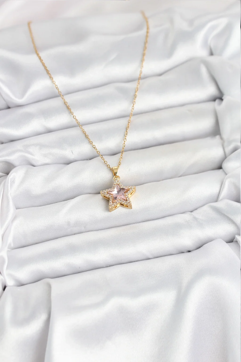 316L Çelik Zincir Pembe Taşlı Yıldız Model Kadın Kolye