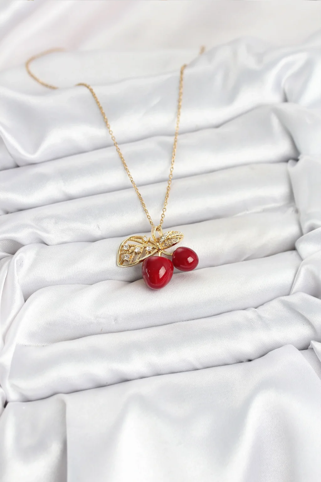 316L Çelik Zincir Gold Renk Kiraz Model Kadın Kolye