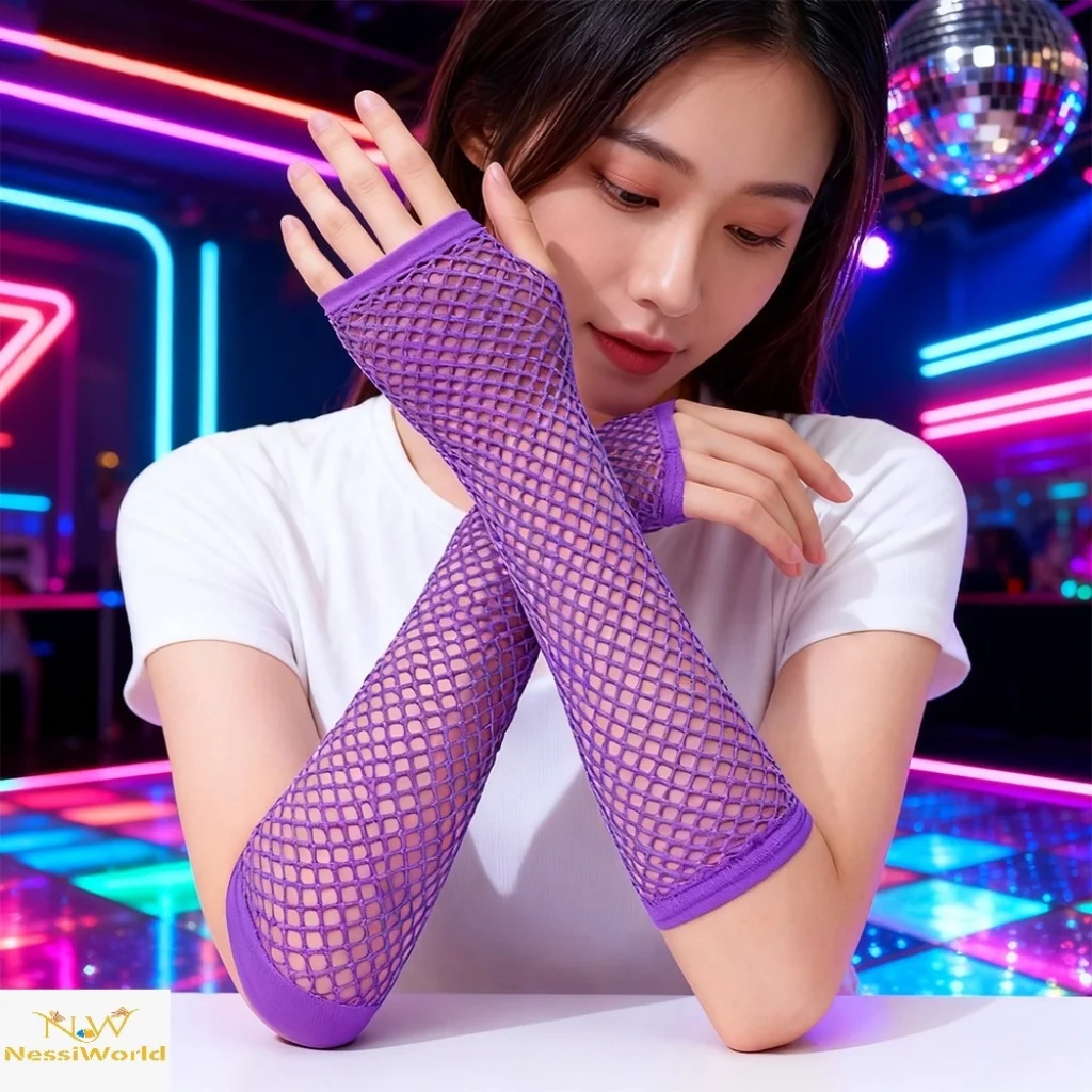 • 80’ler 90’lar Retro Mor File Parmaksız Eldiven 26 cm