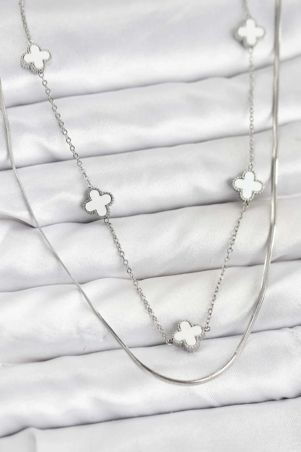 316L Çelik Zincir Gümüş Renk İtalyan Zincirli Yonca Model Kadın Kolye