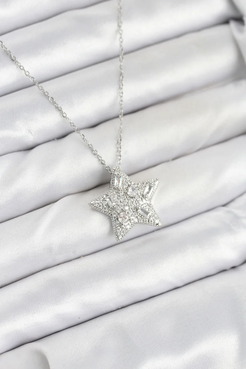 316L Çelik Zincir Gümüş Renk Yıldız Model Kadın Kolye