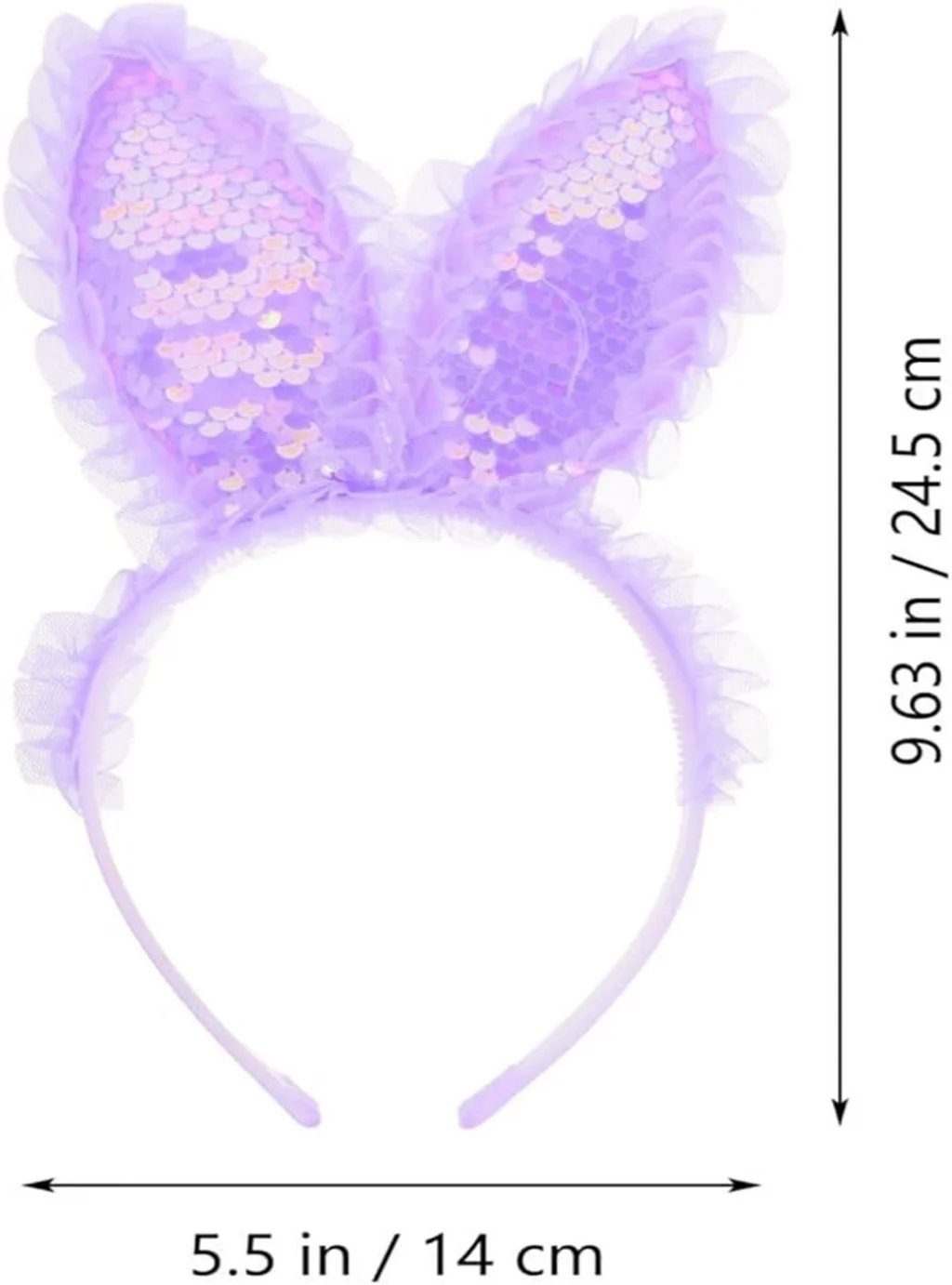 Kenarları Dantelli Mor Pullu Payetli Led Işıklı Tavşan Kulak Taç 23x19 Cm