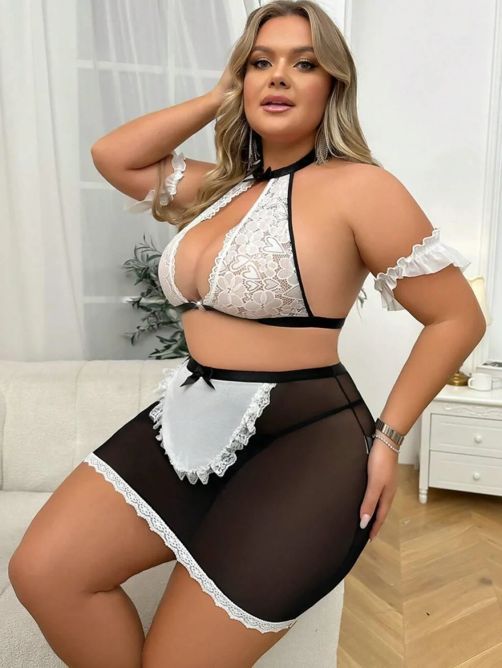 Luz&Pos Aria's Closet Özel Tasarım Büyük Beden Dantelli Fantezi Hizmetçi Kostümü