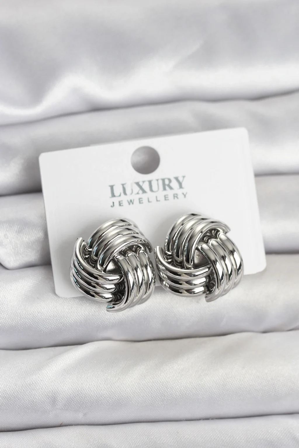 Pirinç Sarmal Gümüş Renk Kadın Küpe