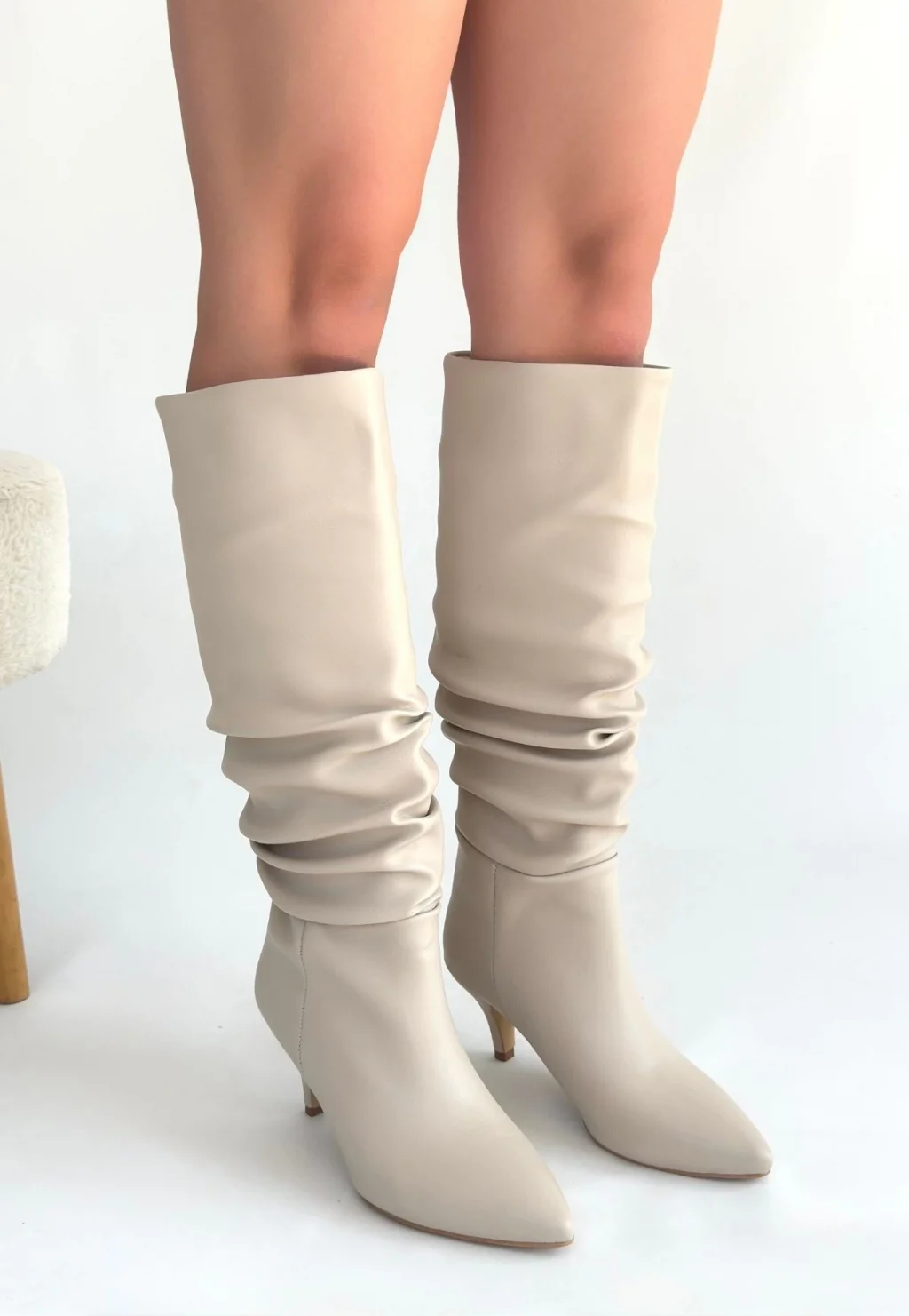 Detay : Topuklu Diz Altı Körüklü Çizme