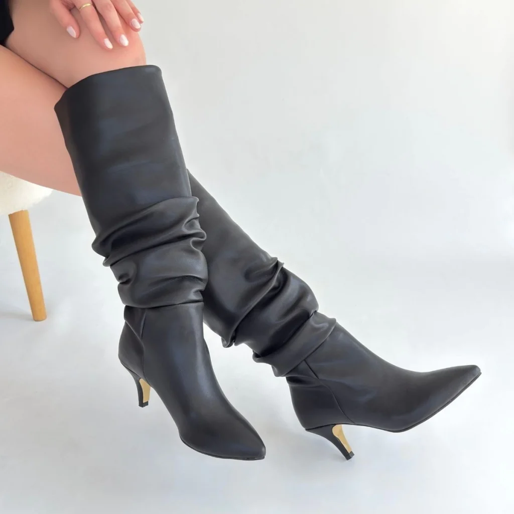 Detay : Topuklu Diz Altı Körüklü Çizme