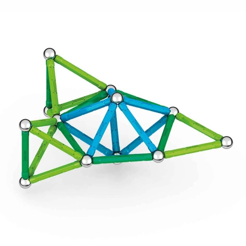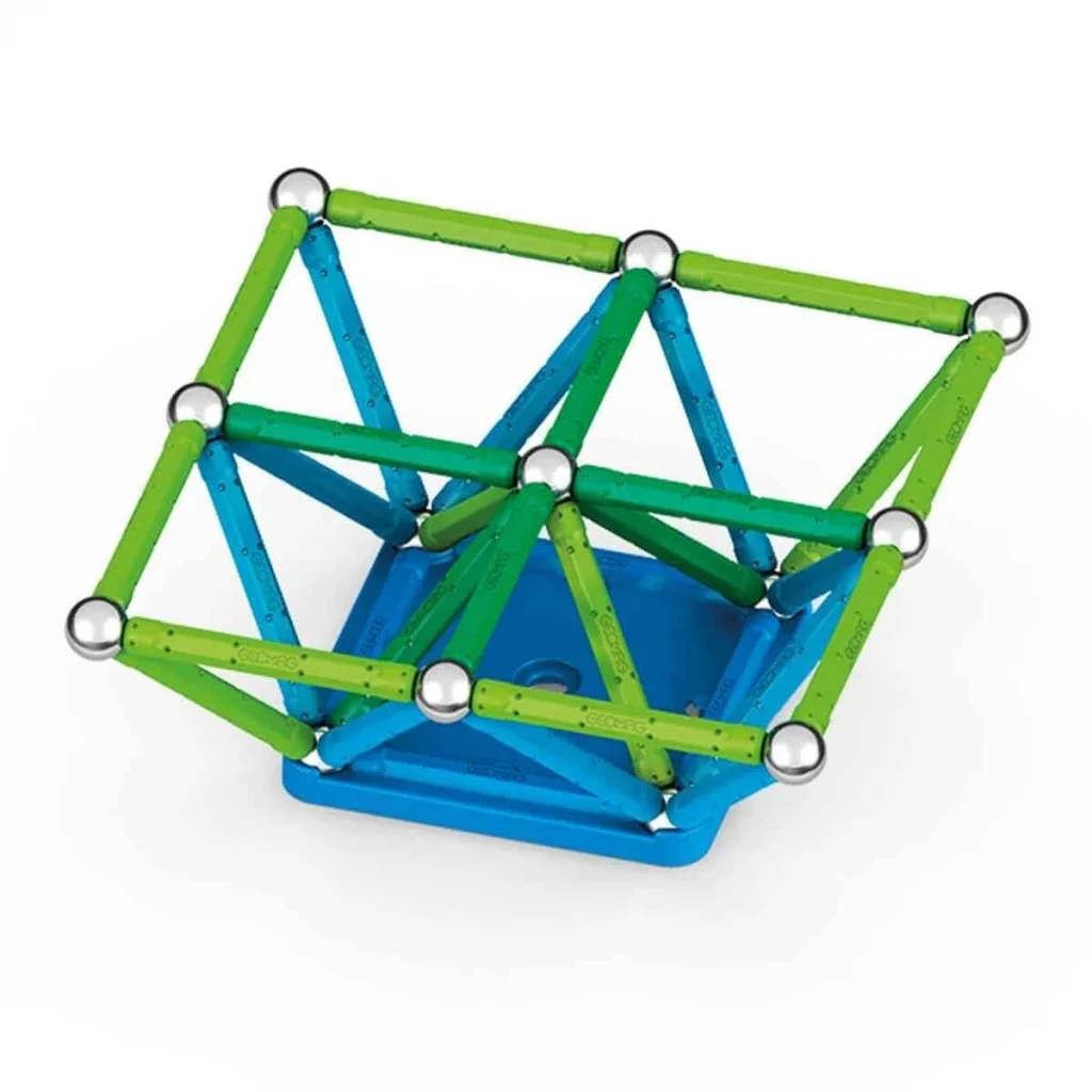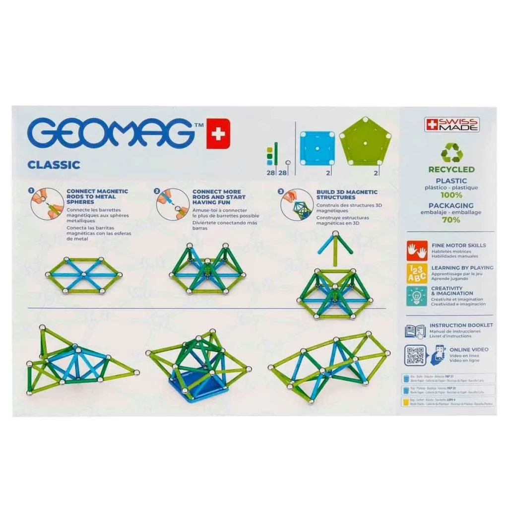 60 parça bir araya geldiğinde neler mi oluyor? Ortaya birbirinden farklı geometrik şekiller ve tasarımlar çıkıyor. Hayal gücüne sınır çizmeyenlerin çok seveceği Geomag Classic Manyetik Zeka Oyunu 60 Parça ile tanışın. Güçlü manyetik çubuklar ile basit ya da karmaşık şekiller oluşturabilir ve onların nasıl birer sanat eserine dönüştüğünü keyifle izleyebilirsin. Oynaması hem çok eğlenceli hem de kolay olan yapım seti ile 28 adet renkli manyetik çubuğu, 28 adet manyetik bilye yardımı ile kolayca bir araya getirerek kendi şekillerini oluşturabilirsin. Oluşturacağın şekle göre çubuk ekleyip çıkarabilirsin. 3D manyetik yapıların, kare ve beşgen tabanların üzerinde yükselmesini sağlayarak eğlenceyi katlayabilirsin. Çocukların; dikkatinin, ince motor becerilerinin ve hayal gücünün gelişmesine katkı sunar. Çocukların yaratıcı oyunlar oynamasını sağlayarak onların merakını destekler. Kutu içerisinde; 28 adet manyetik çubuk, 28 adet manyetik bilye ve 4 adet taban bulunmaktadır.
