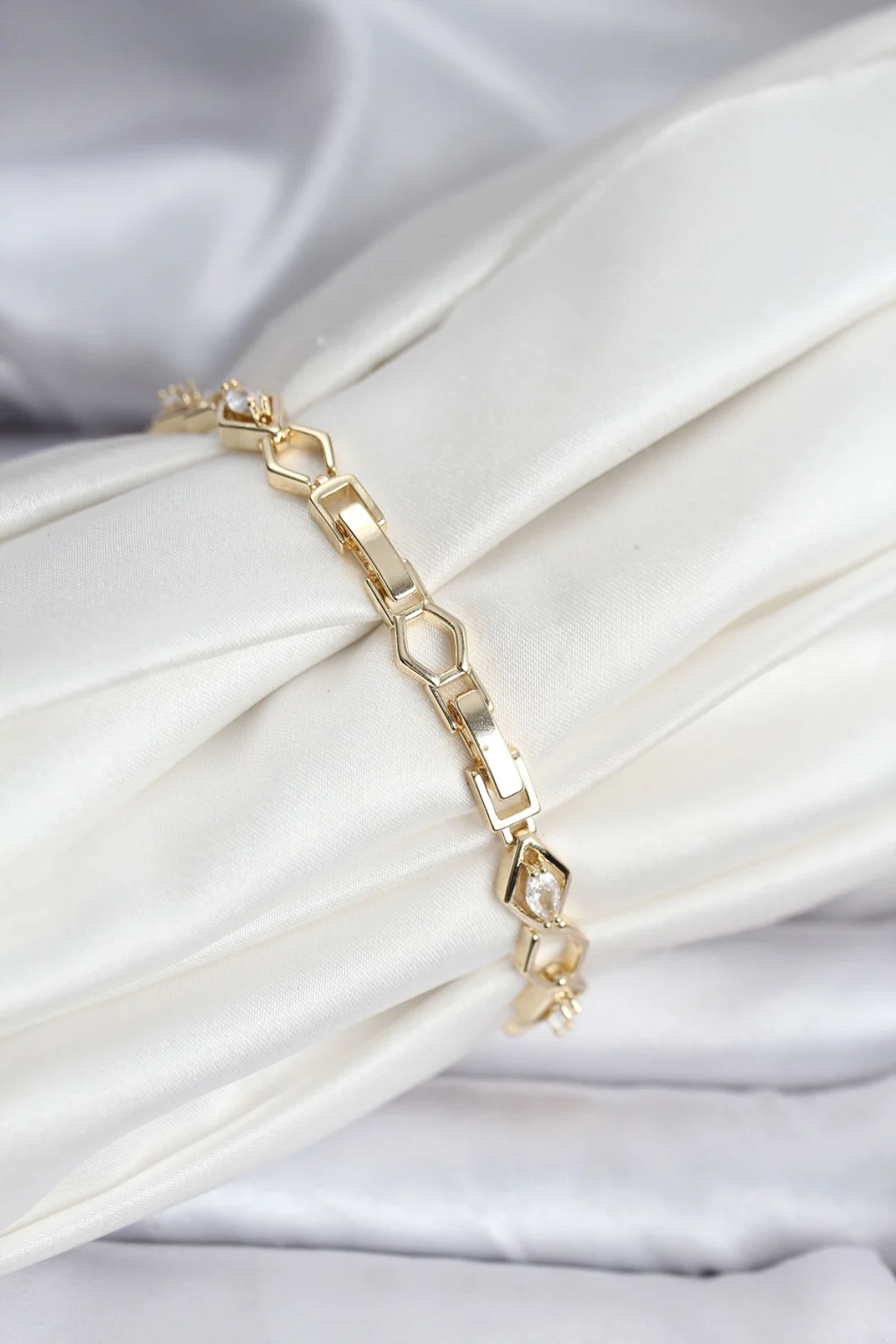 14K Gold Renk Kaplama Baklava Dilim Model Kadın Bileklik