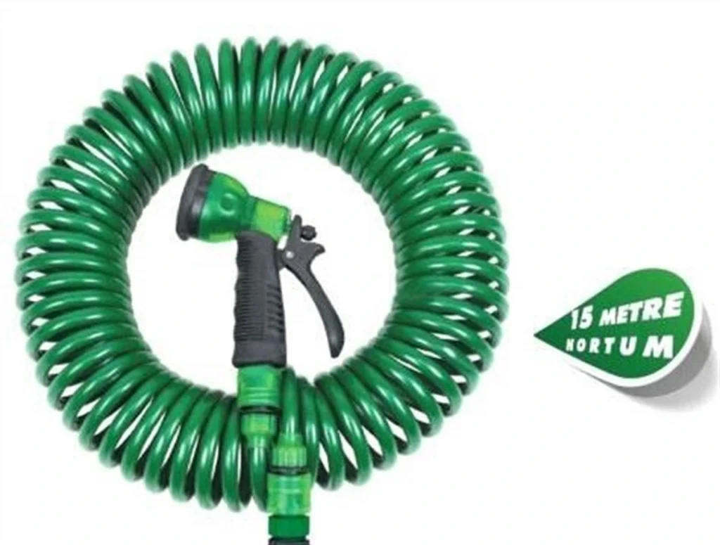 Bahçenizi, çiçeklerinizi sularken, arabanızı yıkarken kullanabileceğiniz spiralli hortumla artık hortum toplamayacaksınız.