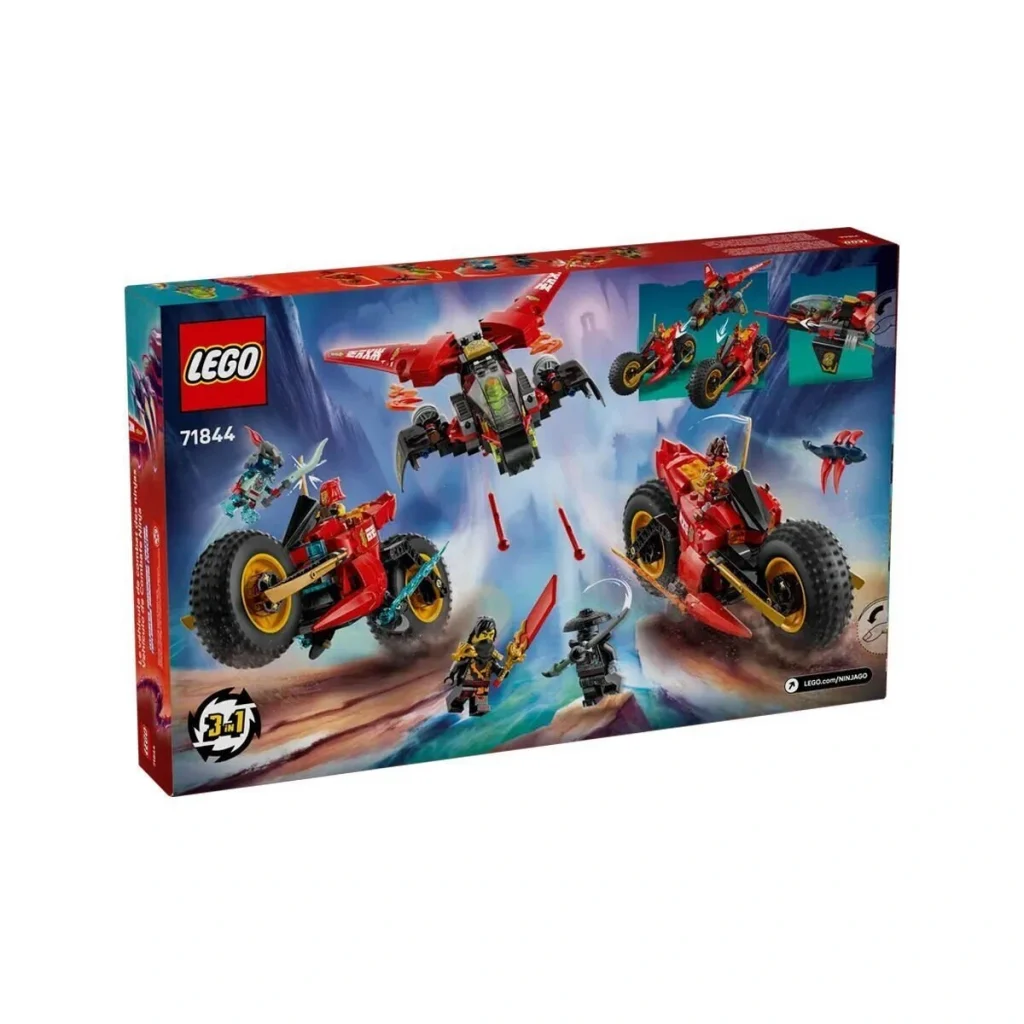 8 yaş ve üzeri çocuklar, Savaş Aracı 3'ü 1 arada aksiyon oyuncağı (71844) ile NINJAGO® Ejderhaların Yükselişi dizisinin 3. sezonundan sahneleri canlandırır. Çocuklar, büyük ninja motosikleti aksiyon oyuncağıyla oynadıktan sonra 3 küçük araca ayırabilir: Kai'nin motosikleti, Wyldfyre'ın motosikleti ve Frak'ın 2 mermi atıcılı oyuncak jet uçağı.