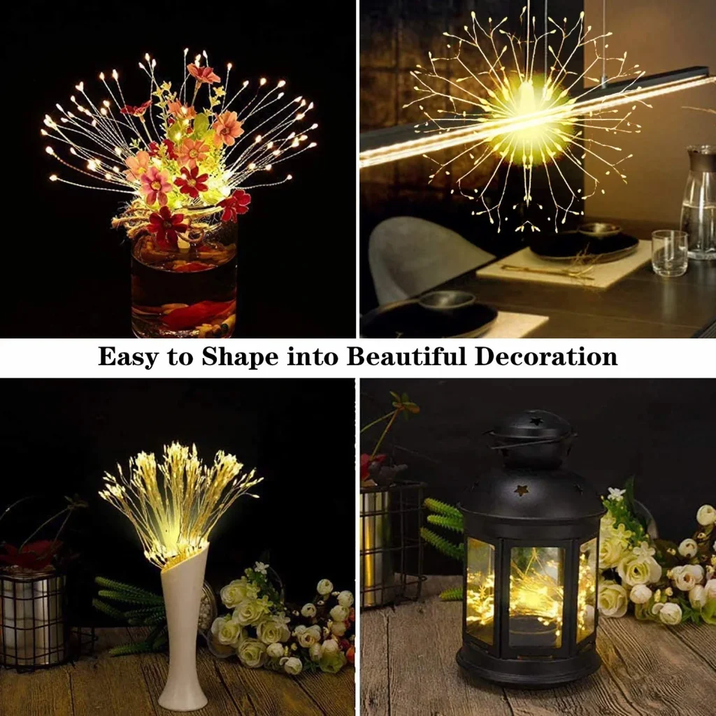 Havai Fişek Şeklinde Işıklar, 120 LED Bakır Tel Havai Fişek Işıklar, Uzaktan Kumandalı, 8 Modlu Kısılabilir LED Işık Zinciri, Parti, Ev, Noel, Bahçe Dış Mekan Dekorasyonu için Su Geçirmez Asma Peri Işıklar