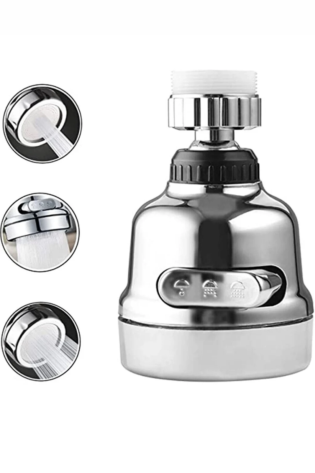 Krom 3 Fonksiyonlu Mutfak Lavabo Başlığı 360 Derece Döner Musluk Ucu