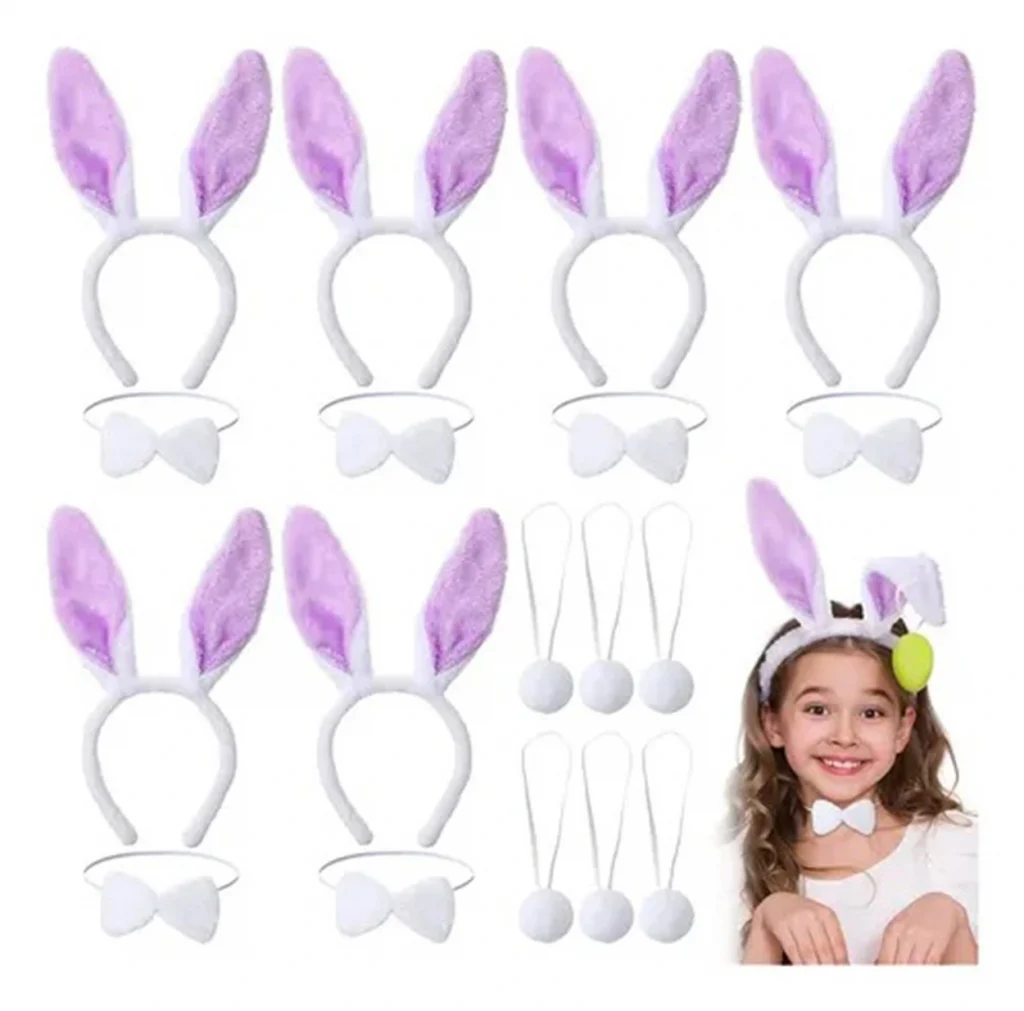 Lila Mor Tavşan Kulak Papyon Kuyruk 3'lü Parti Seti