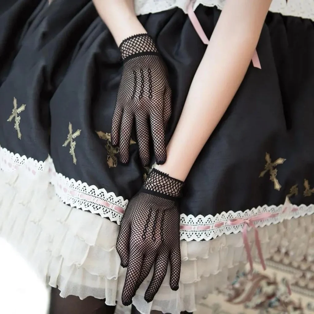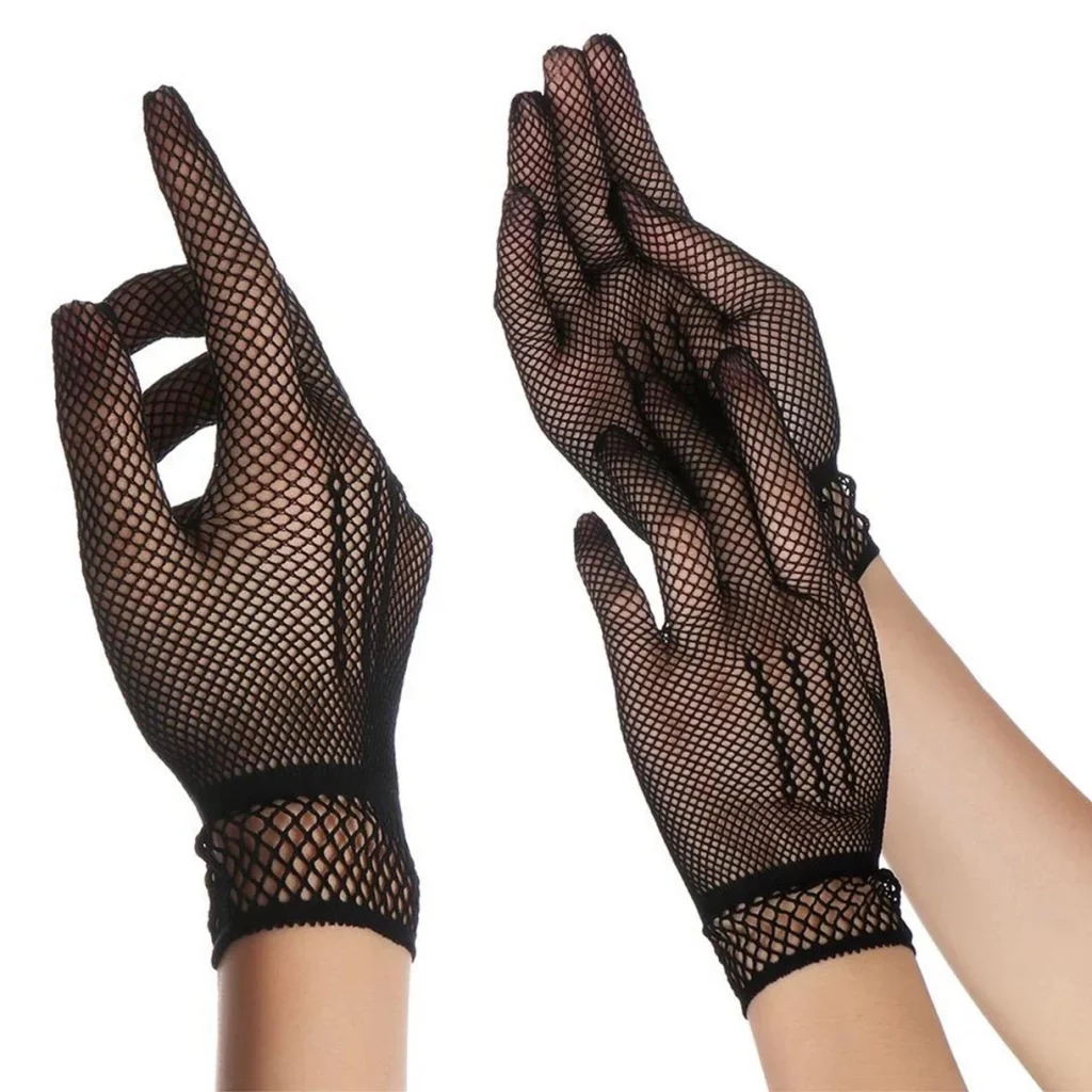 Siyah Renk Likralı File Eldiven Parmaklı Örgü Eldiven Yetişkin Boy