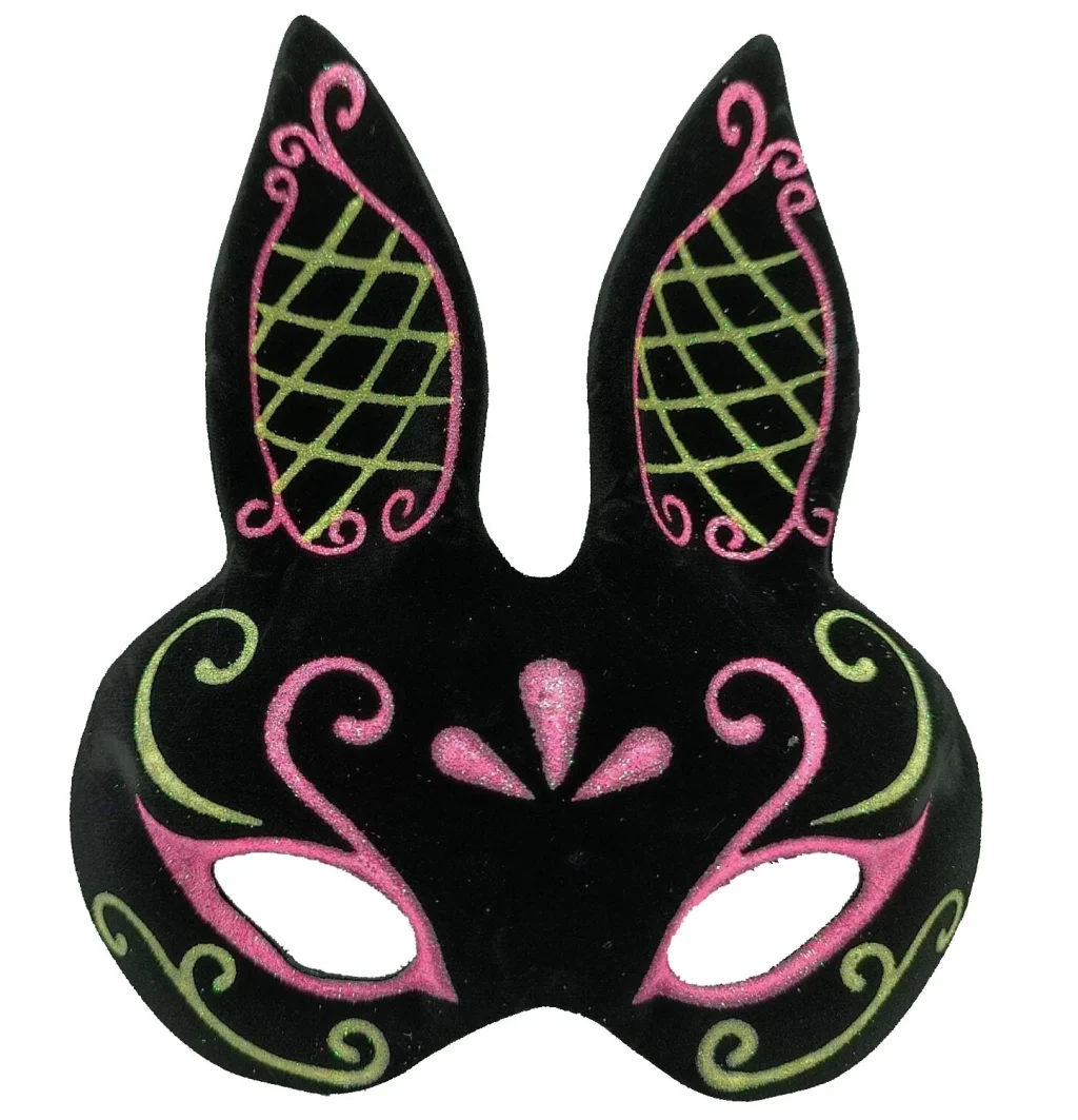 Siyah Renk Pembe Gold Simli Siyah Süet Kaplama Tavşan Maskesi 18x16 Cm