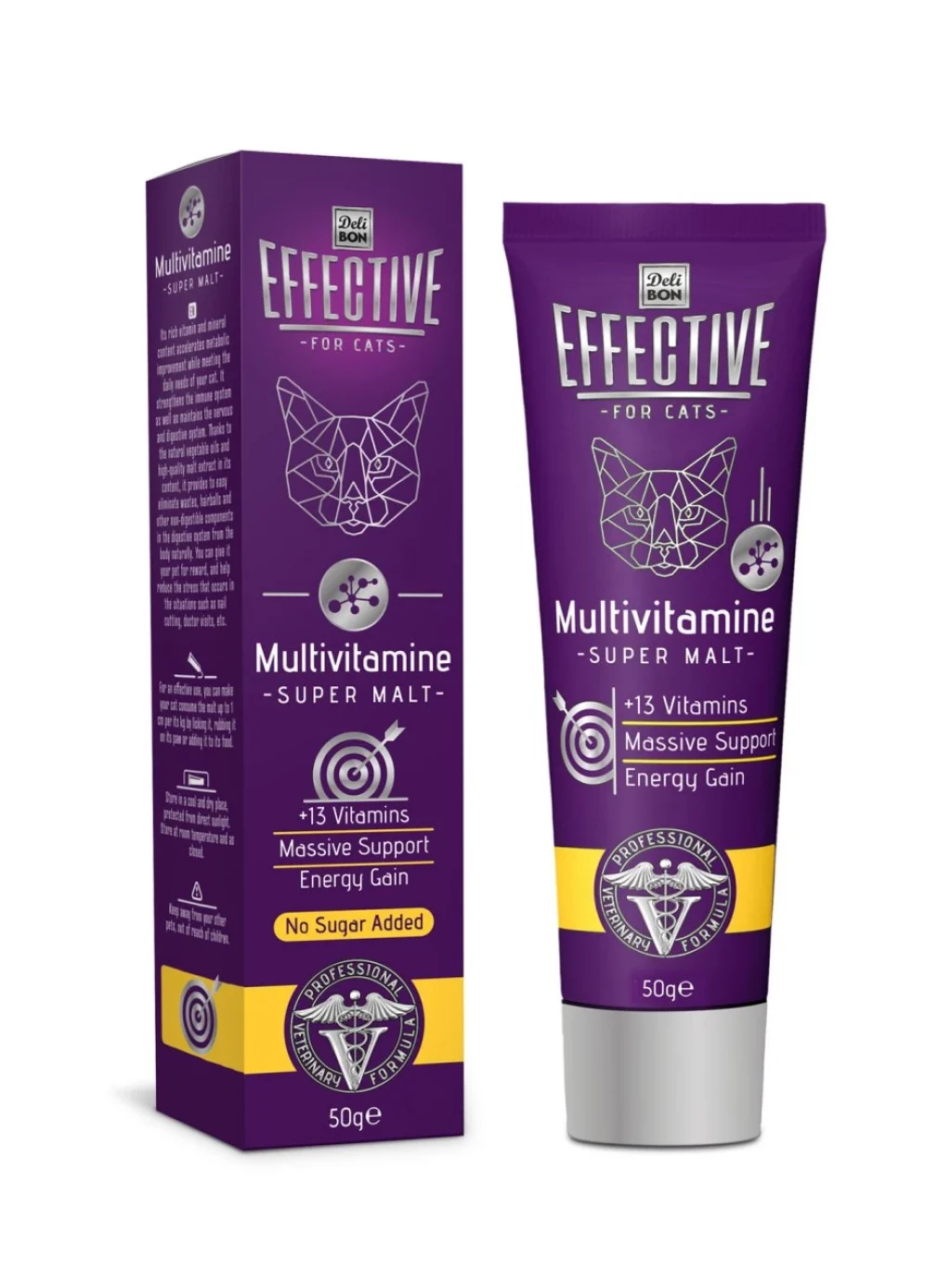 Delibon Effective Kedi Multivitamin 100 g İçeriğindeki 13 ayrı vitamin sayesinde kedinizin ihtiyacı olan tüm vitaminleri karşılayacaktır. Özel aroması sayesinde reddemeyeceği lezzeti sunar.