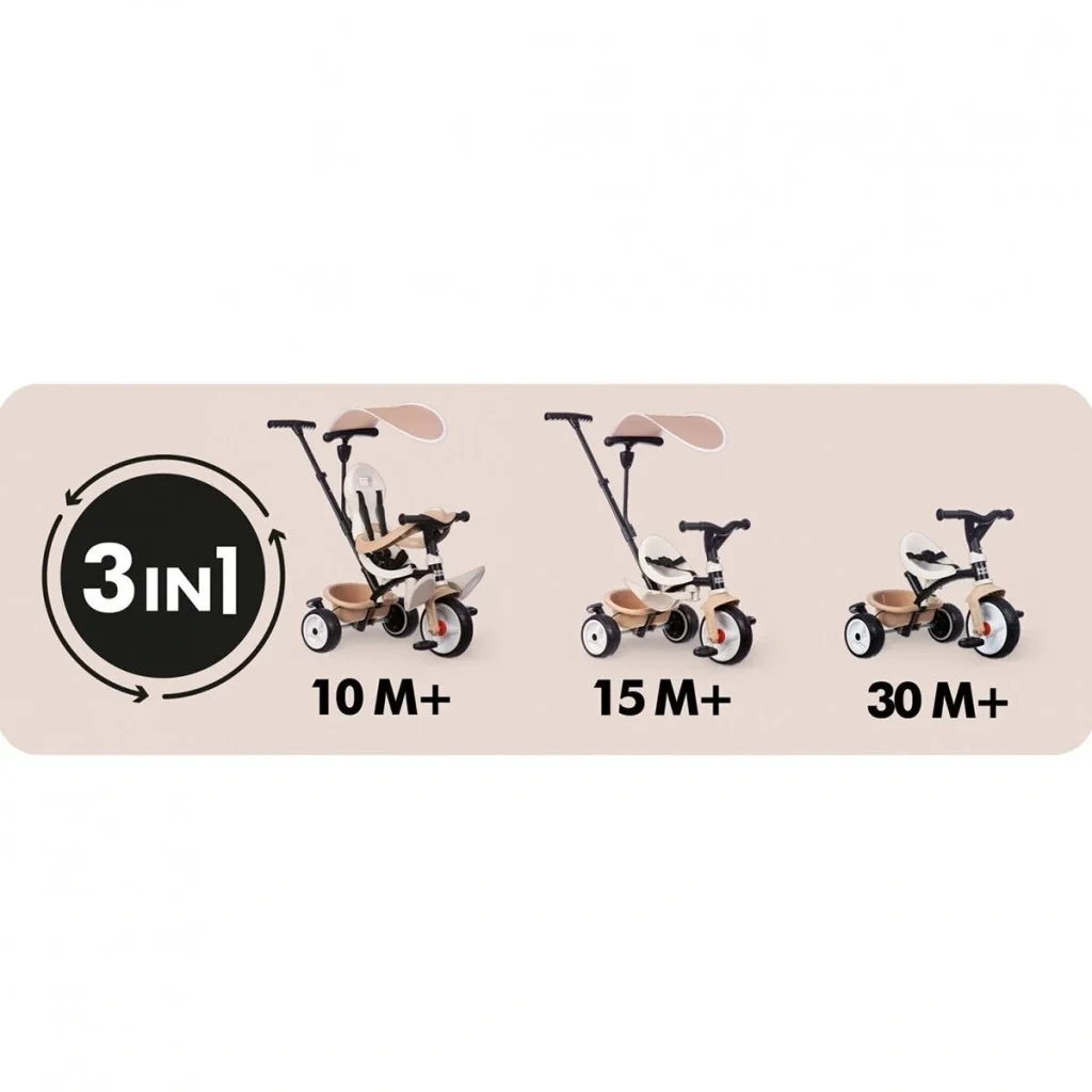 Yenilikçi direksiyon sistemi sayesinde Smoby Baby Balade üç tekerlekli bisiklet, bebek arabasının avantajlarını üç tekerlekli bisikletin avantajlarıyla birleştiriyor. Bu da bu şık hız aracını mükemmel bir çok yönlü araç haline getiriyor: İyi tasarlanmış bebek ve yürümeye başlayan çocuk aracı, kademeli dönüşüm sayesinde çocuğun motor gelişimiyle birlikte büyüyor.