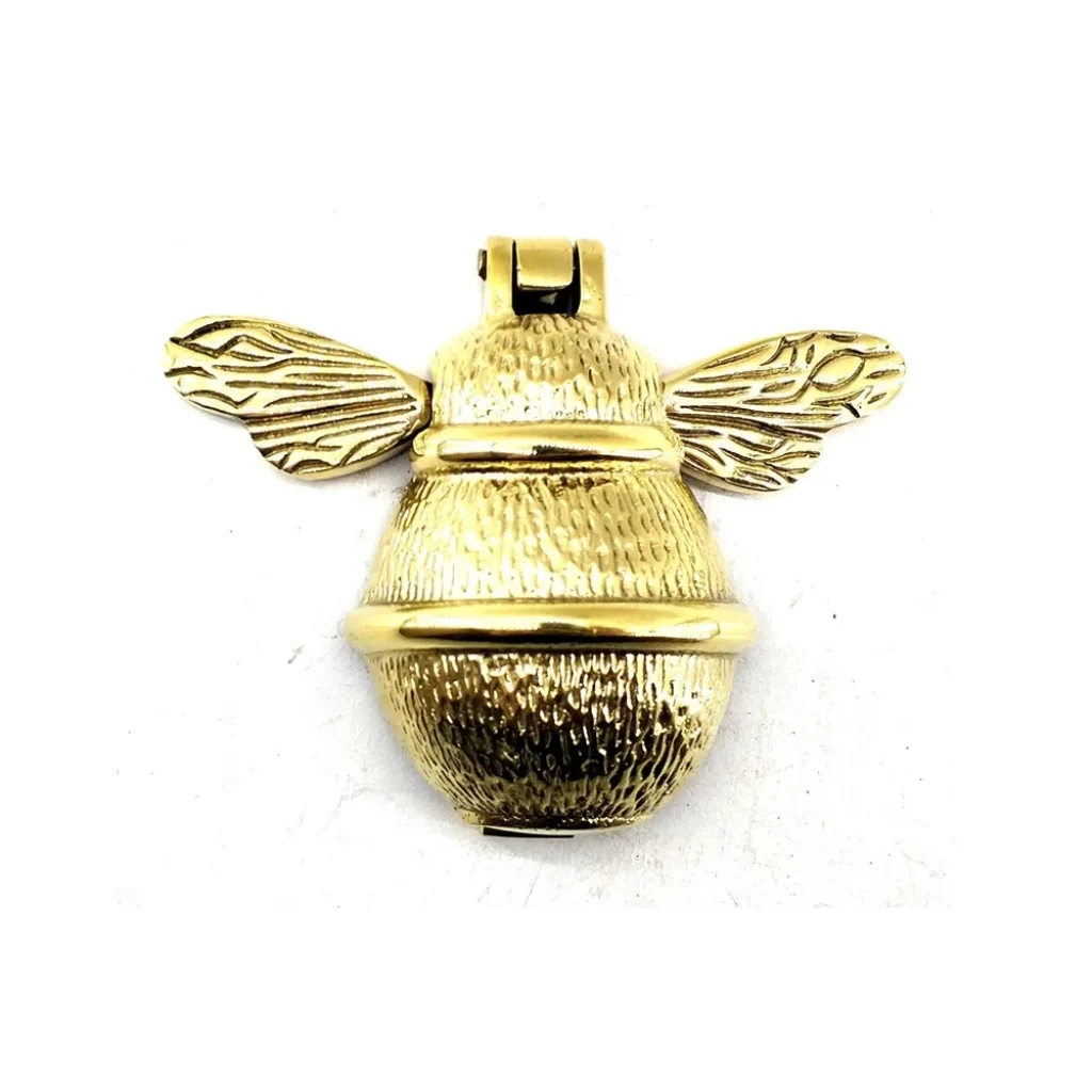 Antika Tarz Dekoratif Pirinç Arı Kapı Tokmağı, Taktak - Küçük,123x150mm, Sarı