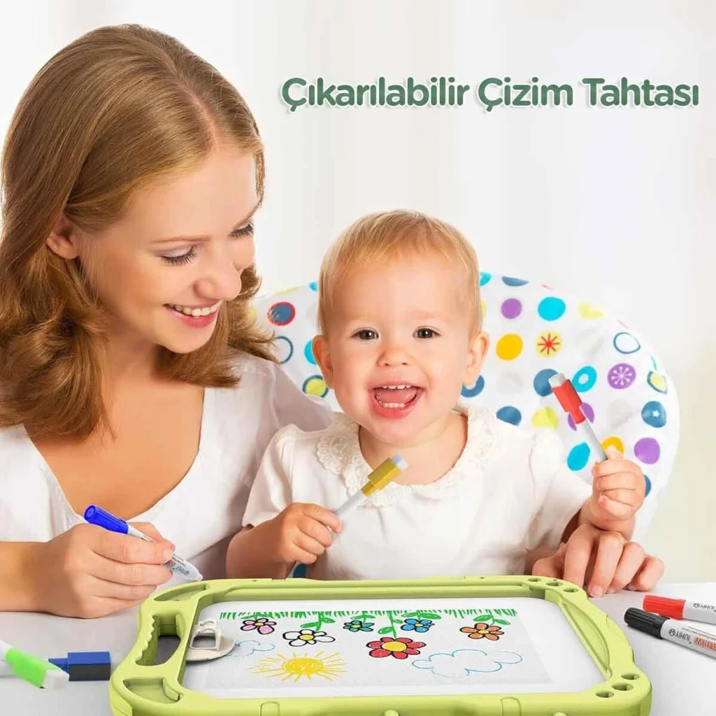 Üstelik manyetik yüzey sayesinde mıknatıslı harfler, sayılar veya şekiller ile oyunlarını daha da