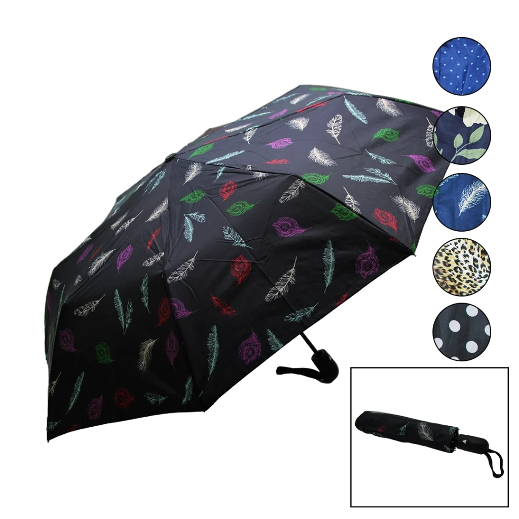 BAYAN - YARI OTOMATİK ŞEMSİYE RENKLİ DESENLİ