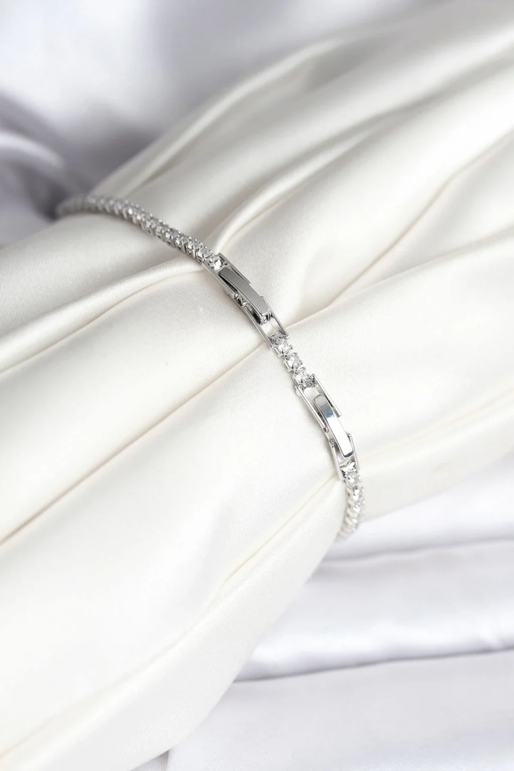 Charmlı Model Zirkon Taşlı Gümüş Renk Su Yolu Kadın Bileklik