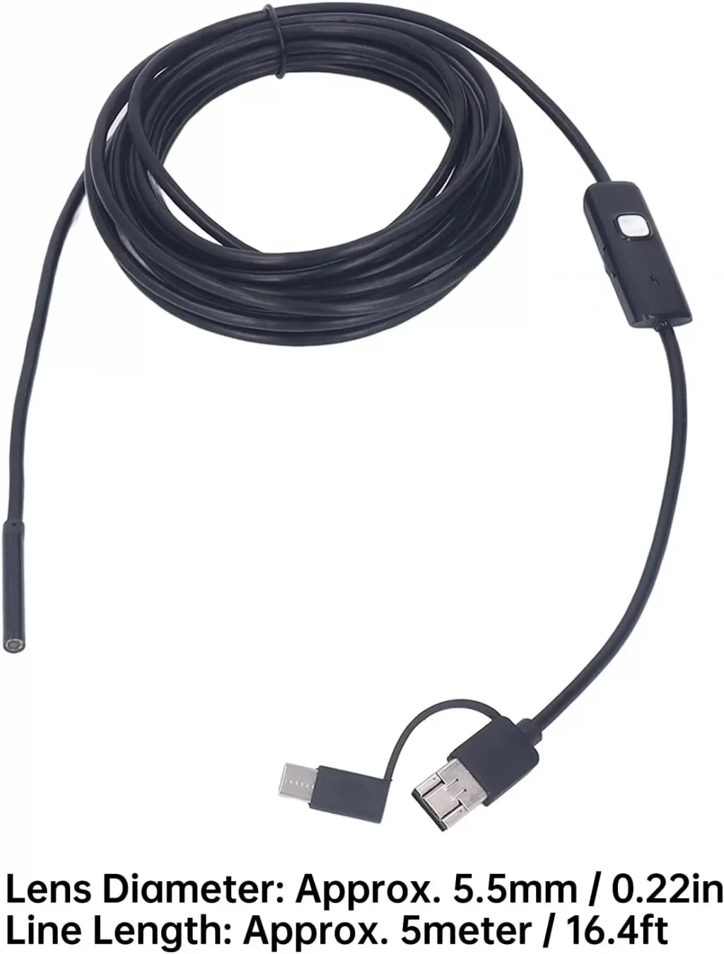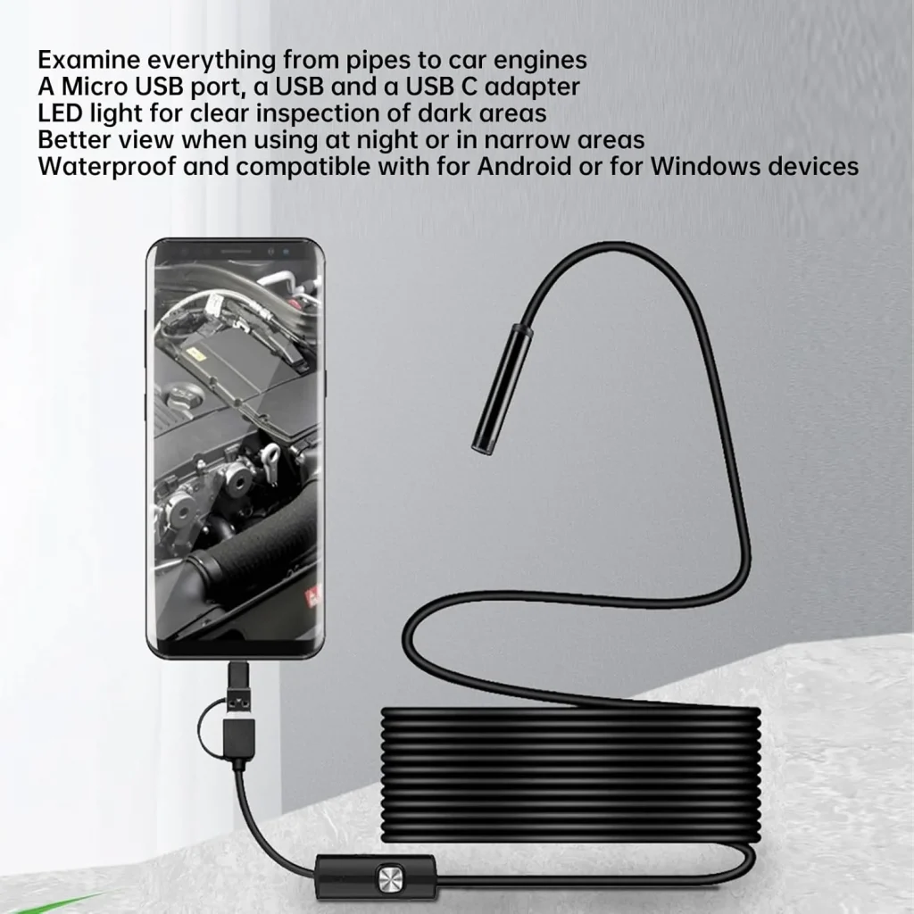 USB Tip C 3 In 1 Endoskop Kamera Işık 5m Uzunluk ile Su Geçirmez Muayene Kamerası