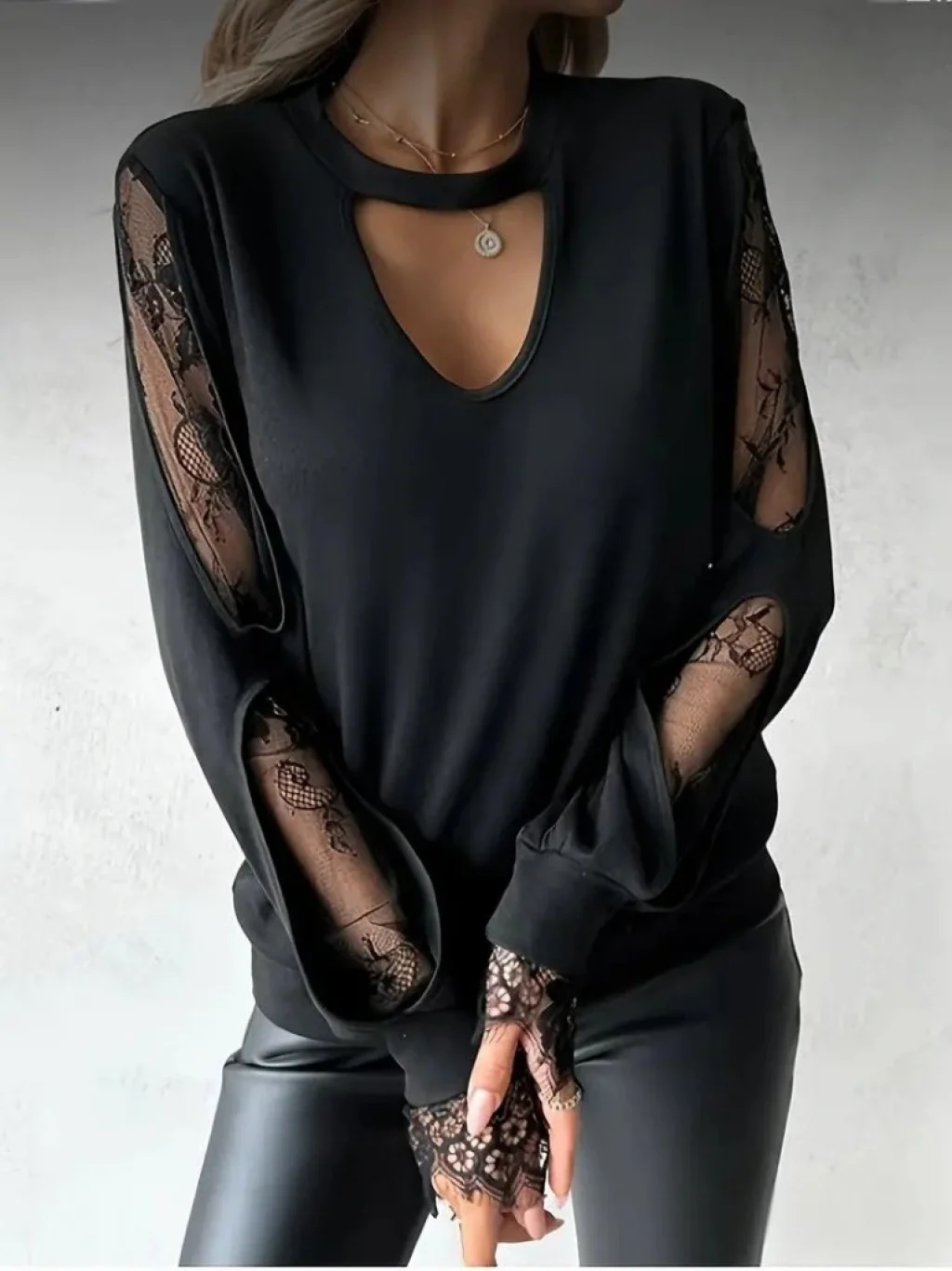 Kadın Uzun Kollu Damla Detaylı Viskon Iki Iplik Bluz