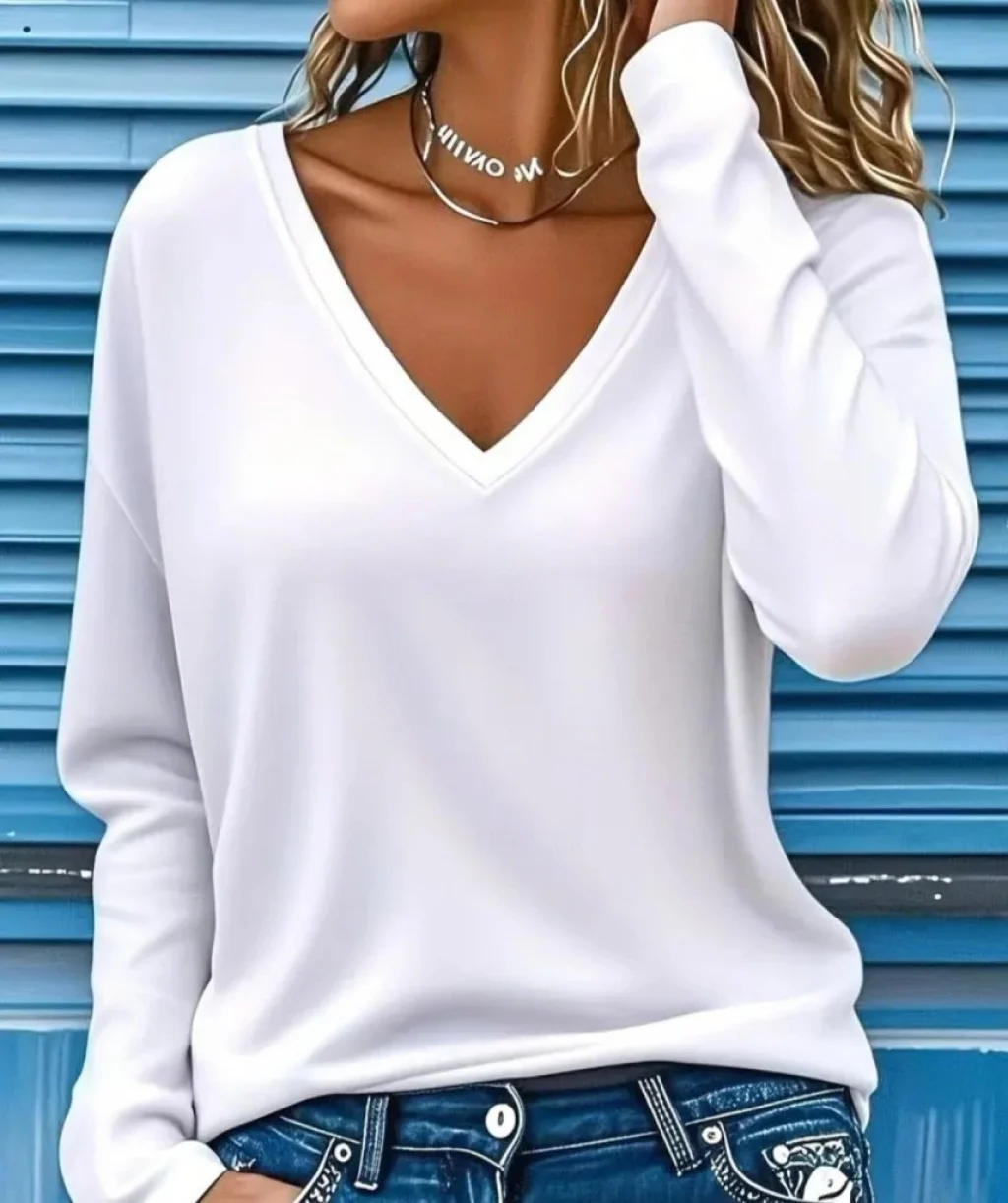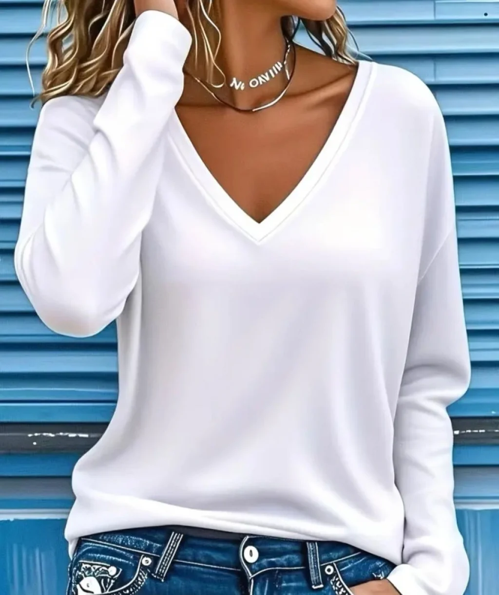 Kadın Uzun Kollu V Yakalı Viskon Iki Iplik Bluz