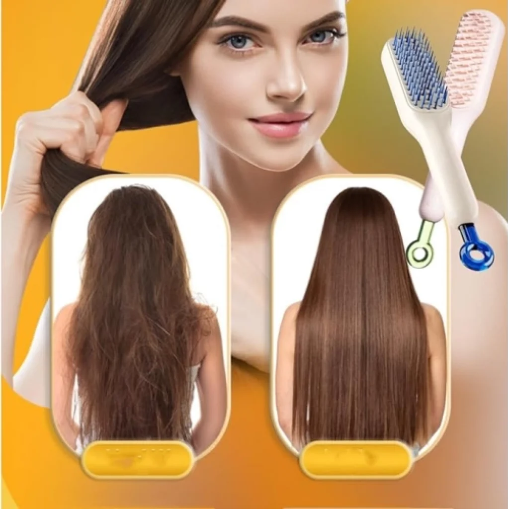 KENDİNİ TEMİZLEYEN SAÇ TARAĞI"Saçınıza Hak Ettiği Bakımı Verin - Her Tarakta Spa Hissi!"Kendi Kendini Temizleyen Anti-statik Masaj Tarağı:- Masaj Özelliği: Bu tarak, kafa derisine masaj yapabilen ve saçı nazikçe tedavi edebilen küçük yuvarlak parçacıklara sahiptir. Bu özellik sayesinde rahatlatıcı bir spa benzeri deneyim sunar.Ergonomik Tasarım:- Kullanım Kolaylığı: Basit ve şık bir görünüme sahip olan tarak, buzlu bir dokuya sahiptir ve ergonomik tutamağı ile rahat ve keyifli bir tarama deneyimi sağlar.Kullanımı Kolay:- Hızlı Temizlik: Geri çekilebilir döner kaldırma mekanizması sayesinde tarak, 1 saniyede saçları temizler. Sadece kolu döndürerek hava yastığının tüm saç ve döküntüleri serbest bırakmasını sağlayabilirsiniz. Bu özellik kepek ve kuru saç derisini tedavi ederek kafa derisi sağlığını ve saç büyümesini destekler.Tüm Saç Tipleri için Uygun:- Çok Yönlülük:Saça nazikçe nüfuz eder, en düğümlü düğümleri kolayca çözer ve tüm saç tiplerine uygundur. Düz saçlar, kıvırcık saçlar, ince saçlar, kalın saçlar, zarar görmüş saçlar, peruk ve uzatılmış saçlar için ideal bir taraktır.Kullanım Alanları- Günlük Kullanım: Her türlü saç tipi ve ihtiyacı için günlük kullanıma uygun.- Saç Bakımı ve Şekillendirme: Hem saç bakımında hem de saç şekillendirmede rahatlıkla kullanılabilir.- Masaj ve Rahatlama:Kafa derisine masaj yaparak rahatlama ve konfor sağlar.Paket İçeriği1 adet kendini temizleyen saç tarağı