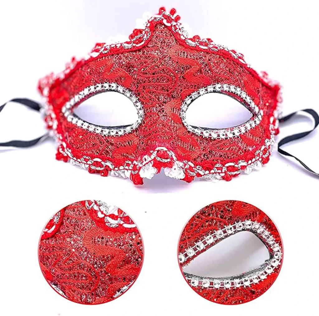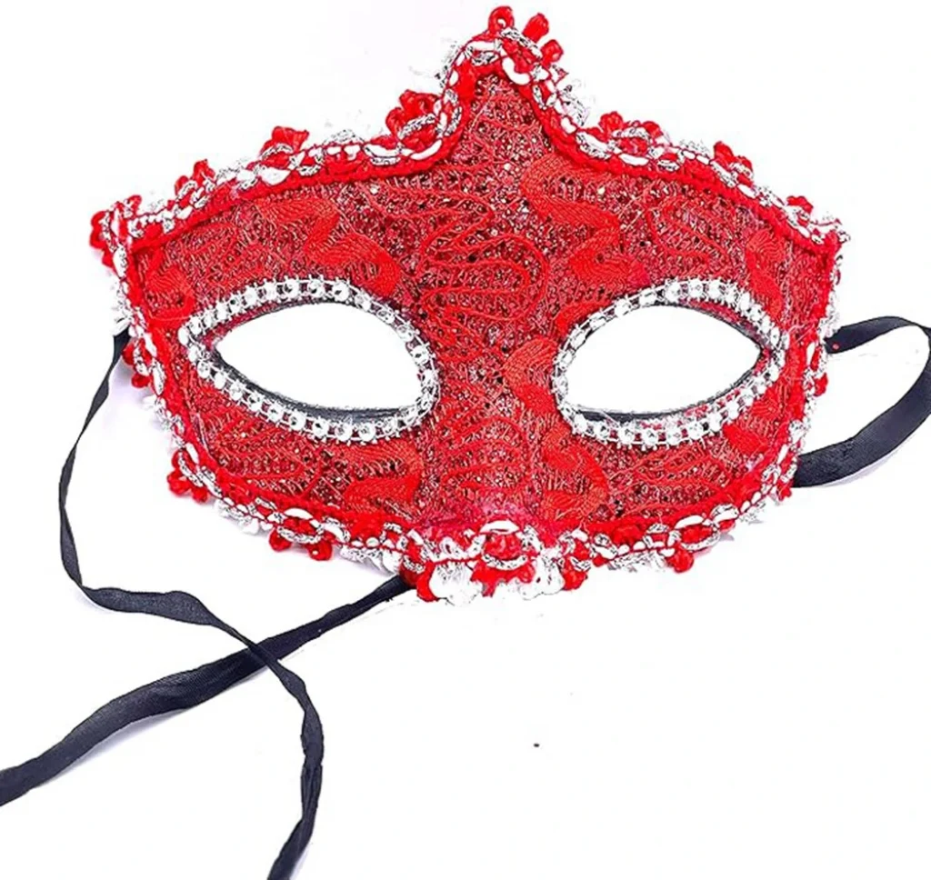 Özel günlerinize zarafet ve gizem katacak bu şık maskeyle göz alıcı bir görünüm elde edin! Kırmızı renk, maske tasarımına dikkat çekici bir parlaklık ve cazibe katarken, zarif dantel detayları maskenize feminen bir hava kazandırır. Göz kısmındaki özgün tasarım, hem gizemli hem de etkileyici bir hava yaratır.
