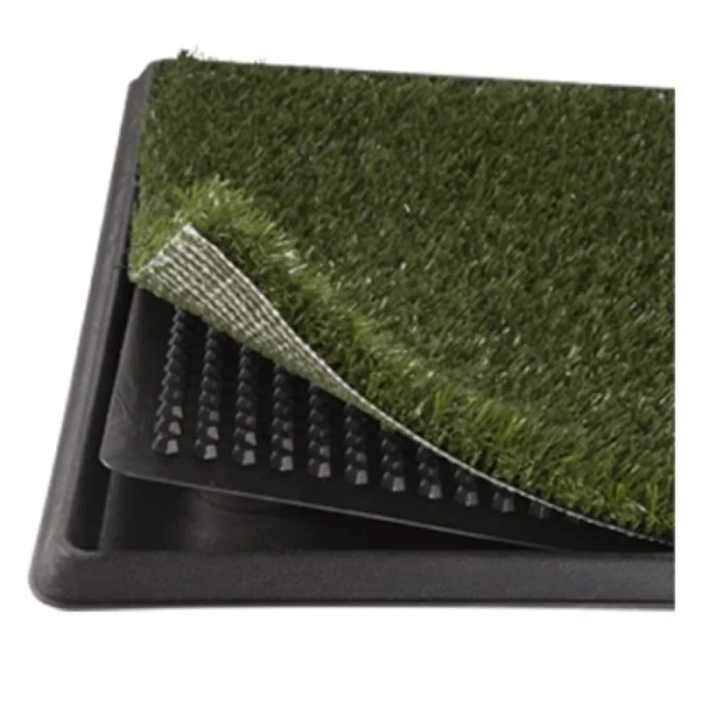 Köpek Tuvalet Eğitim Seti: Minik Dostunuz İçin Pratik ve Hijyenik Bir Çözüm!Yavru köpeğinizin tuvalet eğitimini kolaylaştırmak ve evinizi temiz tutmak ister misiniz?Köpek tuvalet eğitim seti, yavru köpeğinizin tuvalet ihtiyacını karşılaması için özel olarak tasarlanmış pratik ve hijyenik bir üründür. Evde tuvalet eğitimi sırasında size büyük kolaylık sağlayacak bu ürün, köpeğinizin temizlik alışkanlıklarını kazanmasına yardımcı olur.Ürün Özellikleri:3 Katmanlı Yapı: Sentetik çim tabaka, yükseltilmiş ızgara ve toplama tablası olmak üzere üç katmandan oluşur.Gerçek Çim Görünümü: Köpeğinizin doğal ortamını aratmayan bir deneyim sunar.Sıvı Tutma Özelliği: Özel tasarımı sayesinde sıvıyı emerek, kötü kokuların oluşmasını engeller.Kolay Temizlik: Üst yüzey sabunlu su ile temizlenebilir, alt tabla ise kolayca boşaltılabilir.Taşınabilir: Evde farklı yerlerde veya seyahatlerde kullanılabilir.Güvenli Malzeme: Köpeğinizin sağlığına zarar vermeyen, toksik olmayan malzemelerden üretilmiştir.Avantajları:Hızlı Tuvalet Eğitimi: Köpeğinizin tuvalet alışkanlıklarını kazanmasına yardımcı olur.Ev Temizliği: Evde istenmeyen kazaları önler, temizliği kolaylaştırır.Hijyen: Bakteri üremesini engeller, hijyenik bir ortam sağlar.Ekonomik: Tek kullanımlık pedlere göre daha ekonomiktir.Pratik Kullanım: Kurulumu ve temizliği oldukça kolaydır.Kullanım Alanları:Ev İçinde: Köpeğinizin tuvalet ihtiyacını karşılamak için evinizin herhangi bir köşesinde kullanılabilir.Apartman Daireleri: Dar alanlarda bile pratik bir çözümdür.Seyahat: Seyahat ederken yanınızda taşıyabilirsiniz.Nasıl Kullanılır?Yer Seçimi: Köpeğinizin sıklıkla vakit geçirdiği bir yer seçin.Kurulum: Seti düz bir zemine yerleştirin.Eğitim: Köpeğinizi düzenli olarak sete alarak tuvaletini yapmasını sağlayın.Temizlik: Üst yüzeyi sabunlu su ile temizleyin, alt tablayı boşaltın.Ürün Ebatları47 cm * 34 cm * 3.8 cm