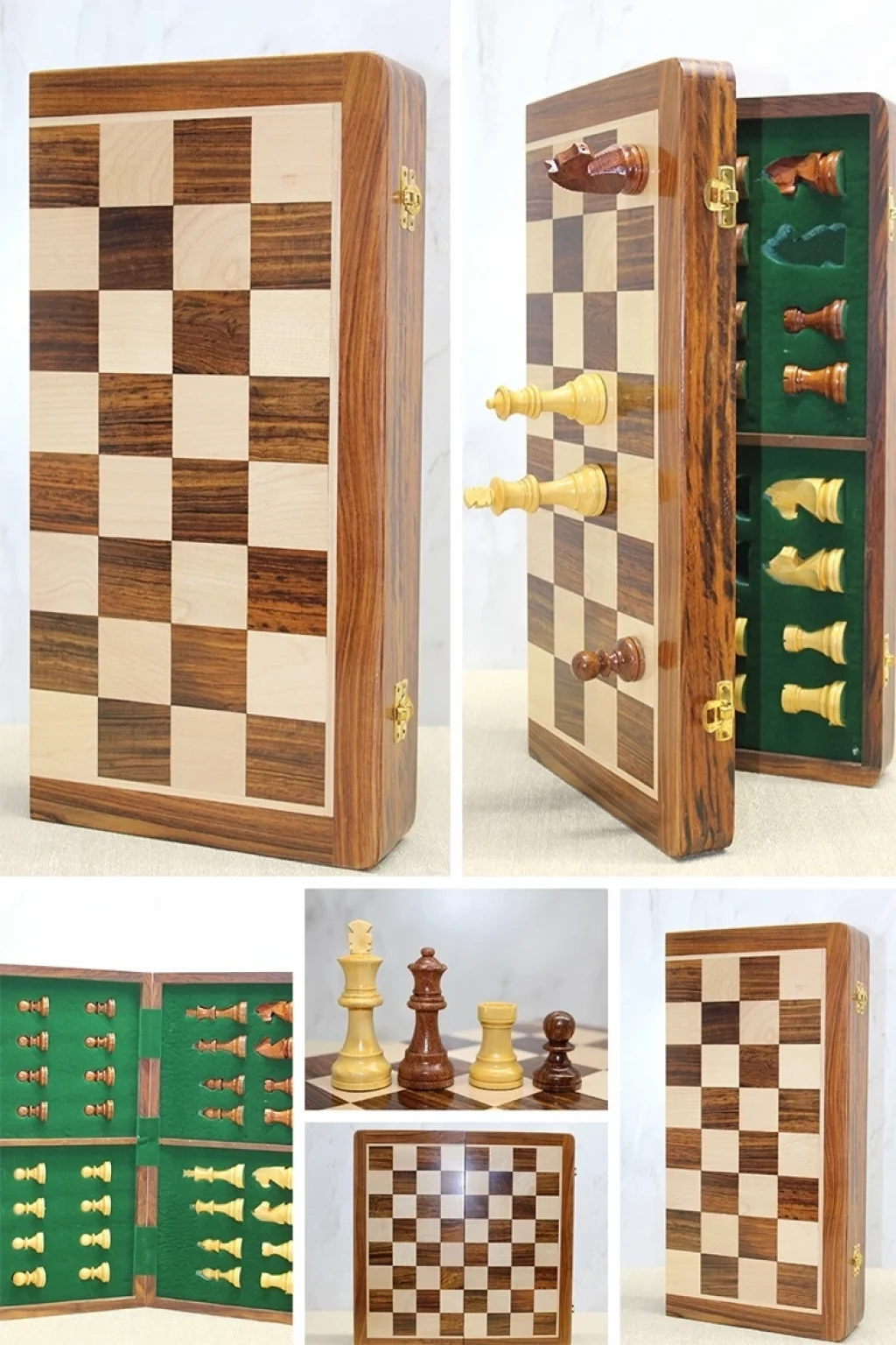 Özel Vernikli Mıknatıs Taşlı Ahşap Katlanabilir Kutulu Satranç Oyunu 25 Cm G222