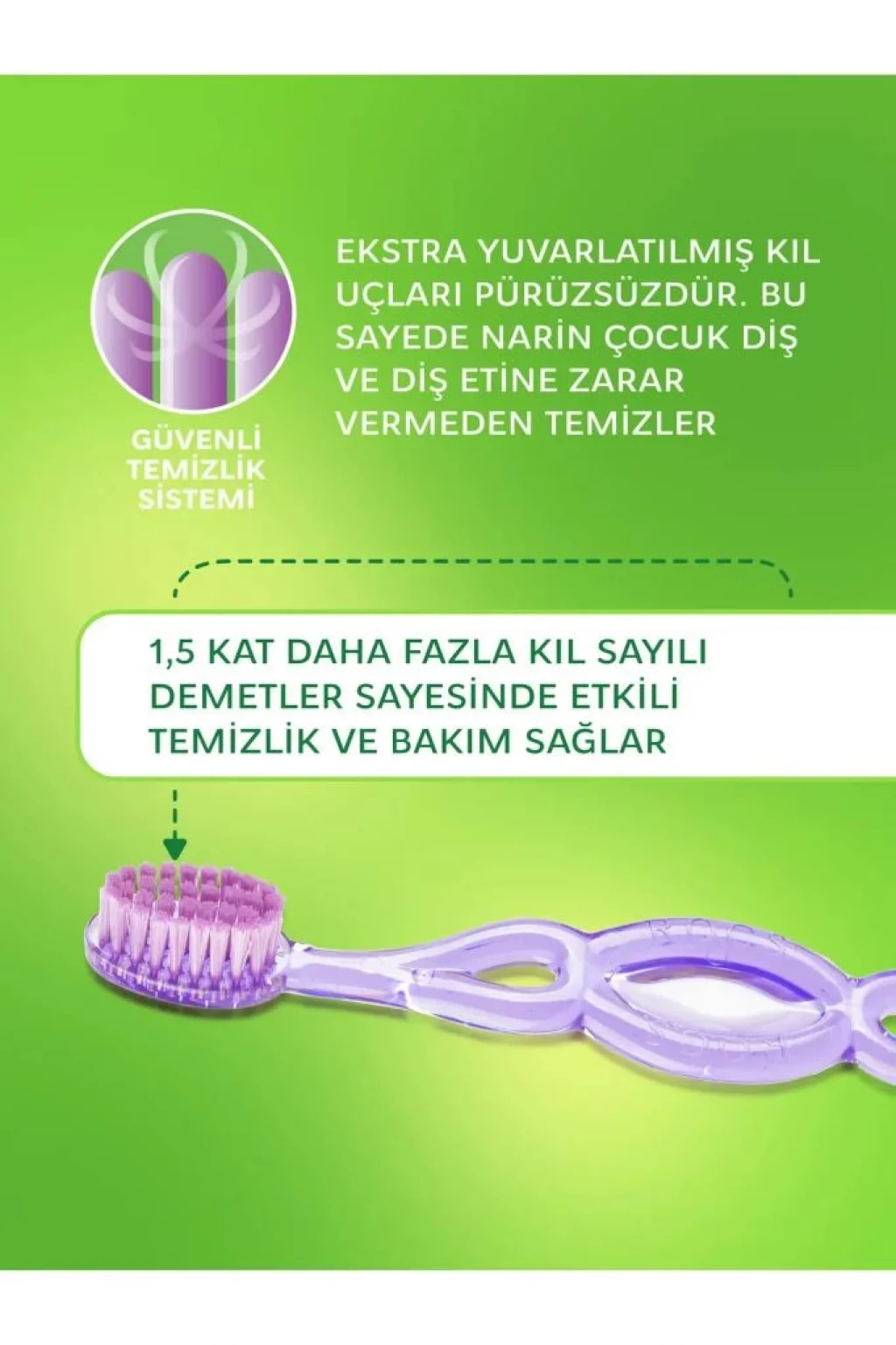 - Bu sayede çocukların narin diş minesine ve diş etlerine zarar vermeden temizler.