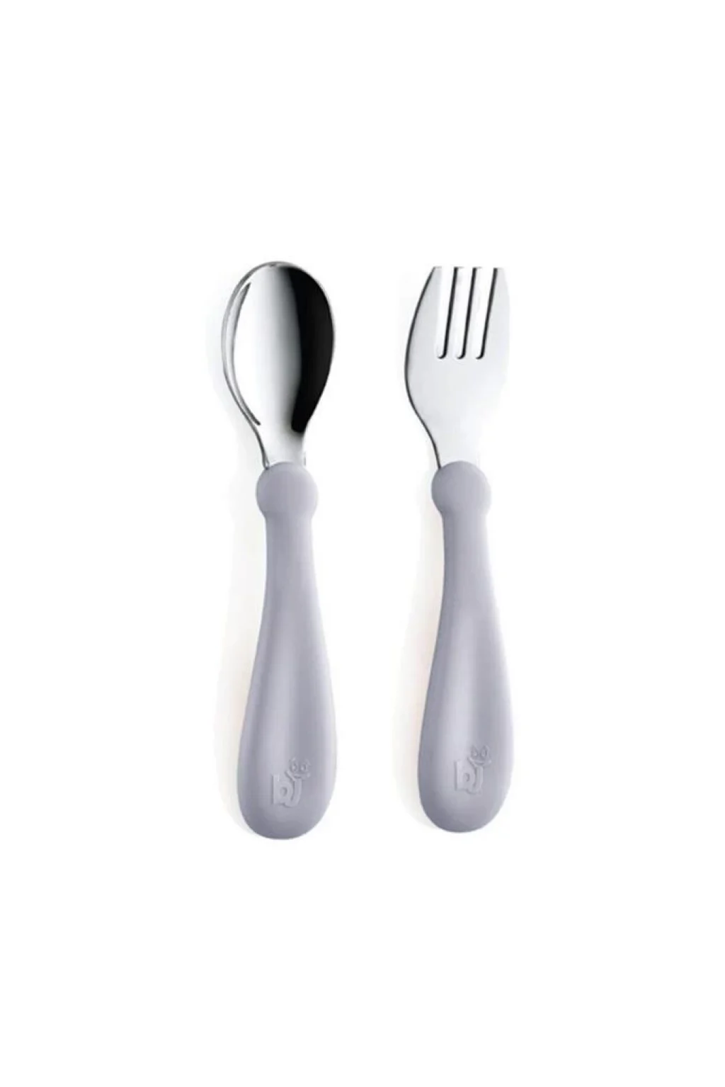 Paslanmaz çatal kaşık seti, bebeklerin kendi kendine yeme alışkanlığı kazanmasına ve yetişkin çatal kaşıkları kullanmasına geçişte yardımcı olur.