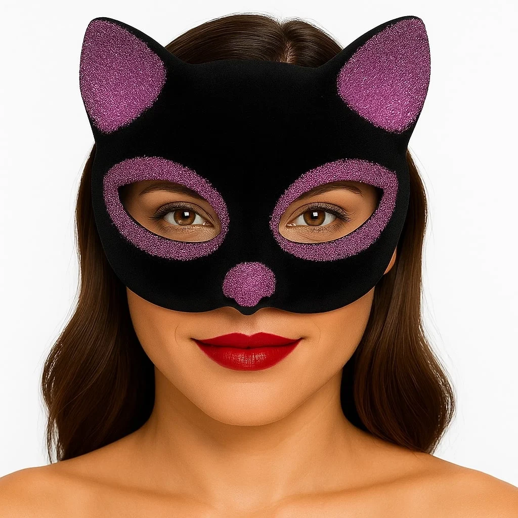 Siyah Renk Pembe Simli Süet Kedi Maskesi ile sevimli ve eğlenceli bir görünüm oluşturun ve özel günlerinizi unutulmaz kılın!
