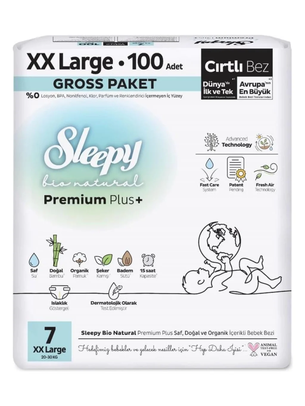 • Sleepy Bio Natural Bebek Bezi Gross Paket 7 Beden 20-30 Kg 100 Adet