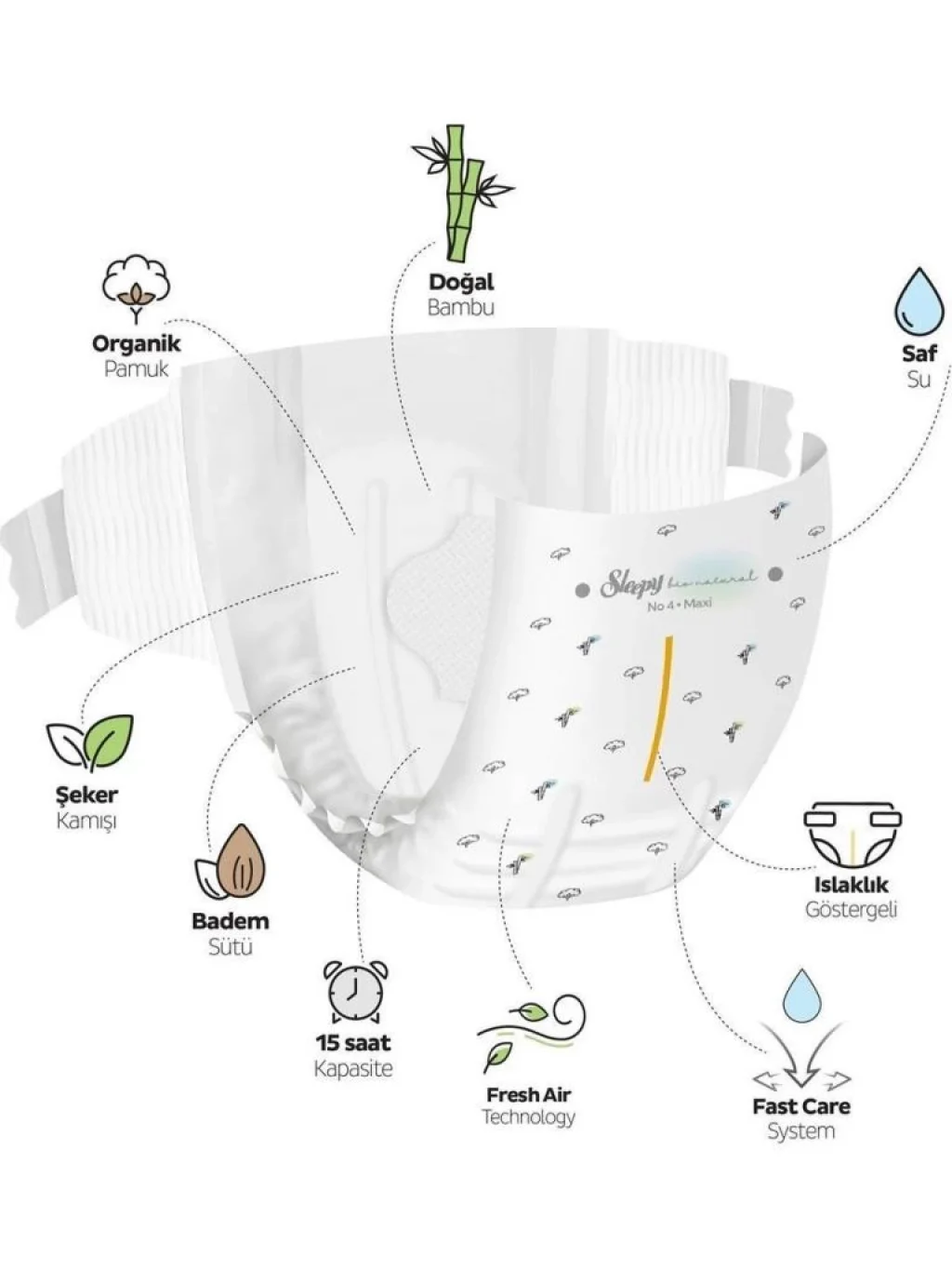 Sleepy Bio Natural Bebek Bezi Gross Paket 7 Beden 20-30 Kg 100 Adet Özellikleri;
