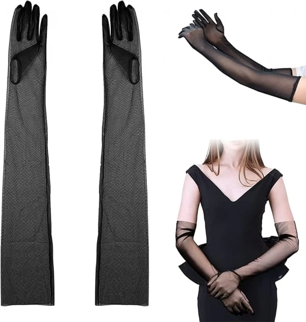 Nessiworld Uzun Boy Likralı Siyah Renk Yetişkin Mega Tül Eldiven 53 cm