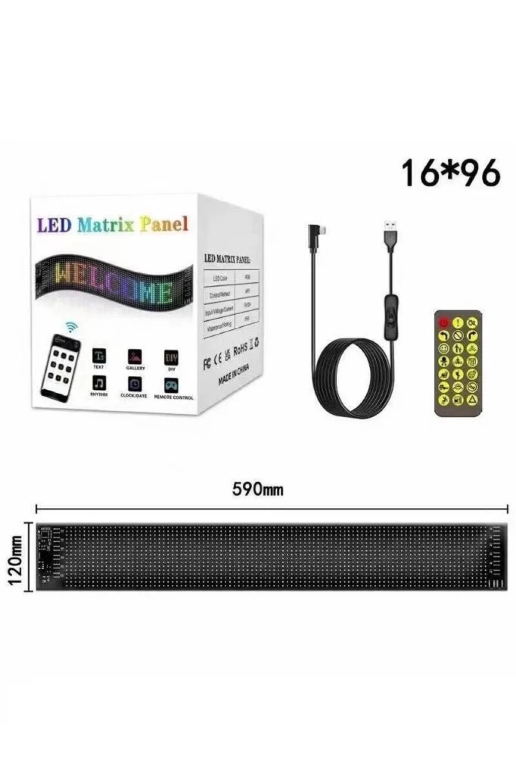 Rp1259 Led Matrix Panel 16x96cm Telefon Kontrollü Kayar Led Animasyon Aydınlatma