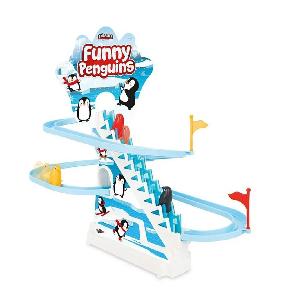 Kutu içeriği; 1 Adet Yürüyen Merdivenli Konsol, 1 Adet Konsolün Üstüne Takılan Jolly Penguin Yazılı Pano, 3 Adet Kaydırak Bandı, 3 Adet Sevimli Penguen, 3 Adet Flama