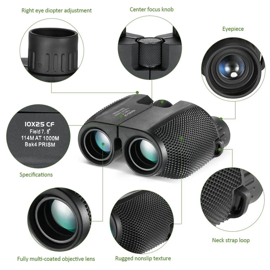 10x25 Kompakt Dürbün Yüksek Güçlü Açık Spor Teleskop Cep Kapsamı Konser Seyahat Çocuklar İçin Hediye
