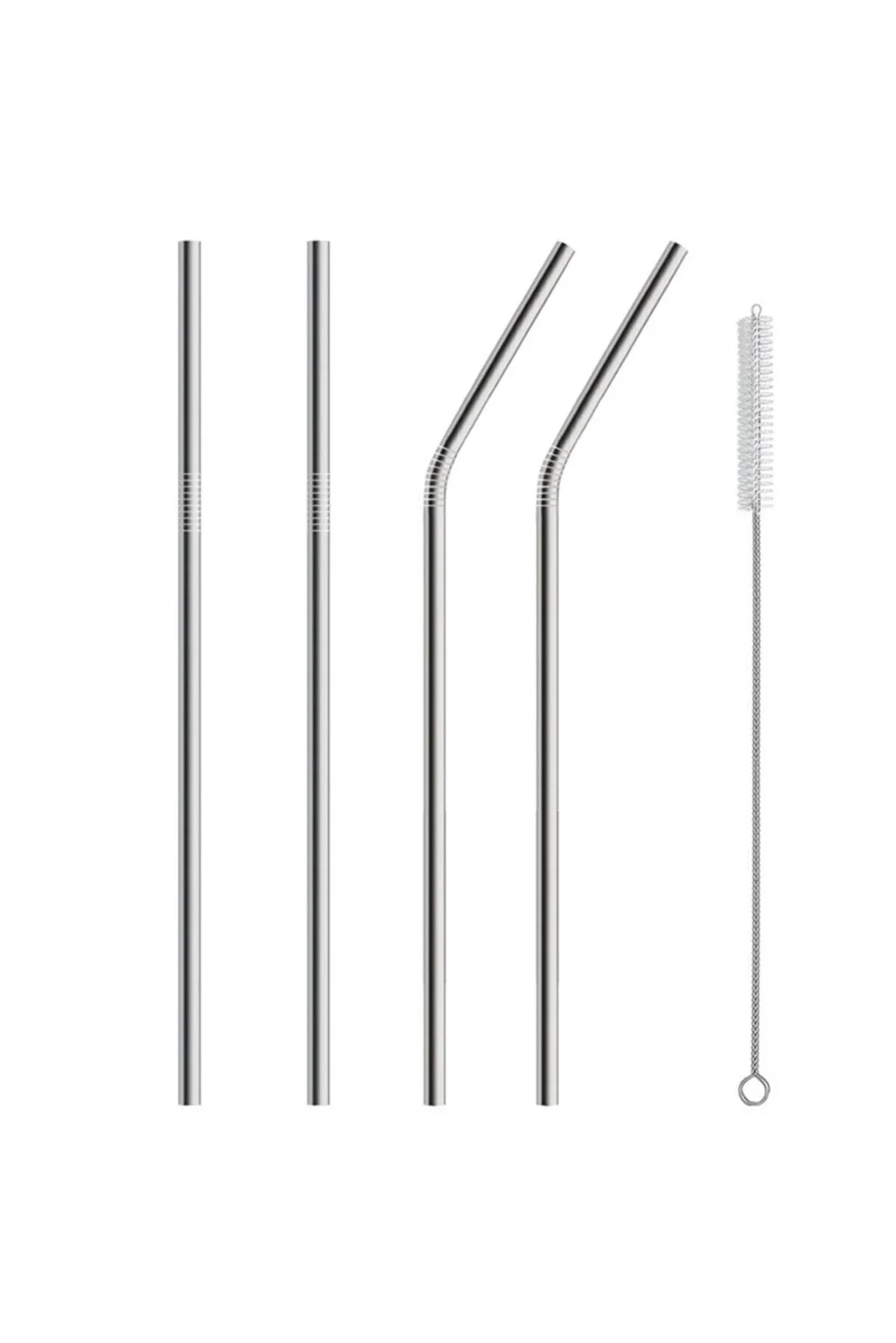 5 Parça Metal Pipet - Paslanmaz Çevre Dostu Metal Pipet Fırça Seti