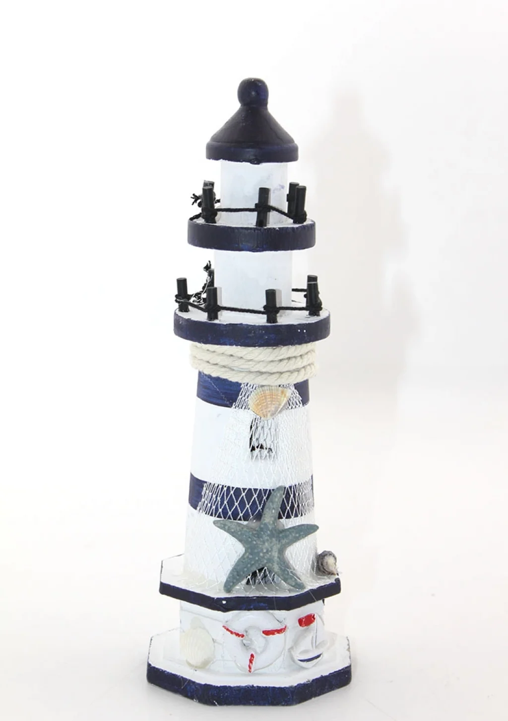 AHŞAP MARİN DENİZ FENERİ MODEL 3Ürün ÖzellikleriAhşap Marin Deniz Feneri Model 3, deniz temalı dekorasyon severler için özel olarak tasarlanmıştır. Şık ve zarif yapısıyla her ortama estetik bir hava katar. 23x8 cm ölçülerindeki kompakt tasarımı sayesinde masa, raf veya vitrin gibi alanlarda kolayca sergilenebilir. Ahşap malzemeden üretilmiş olup, dayanıklı ve uzun ömürlü bir dekoratif üründür. El işçiliği ile detaylandırılmış olup, mavi-beyaz renk kombinasyonuyla marin temalı mekanlara uyum sağlar.Paket İçeriği1 adet Ahşap Marin Deniz Feneri Model 3