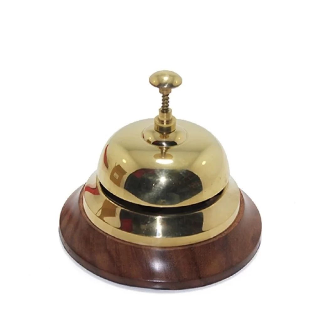 Altı Ahşap Üstü Pirinç Masa Üstü Resepsiyon Çanı 4414