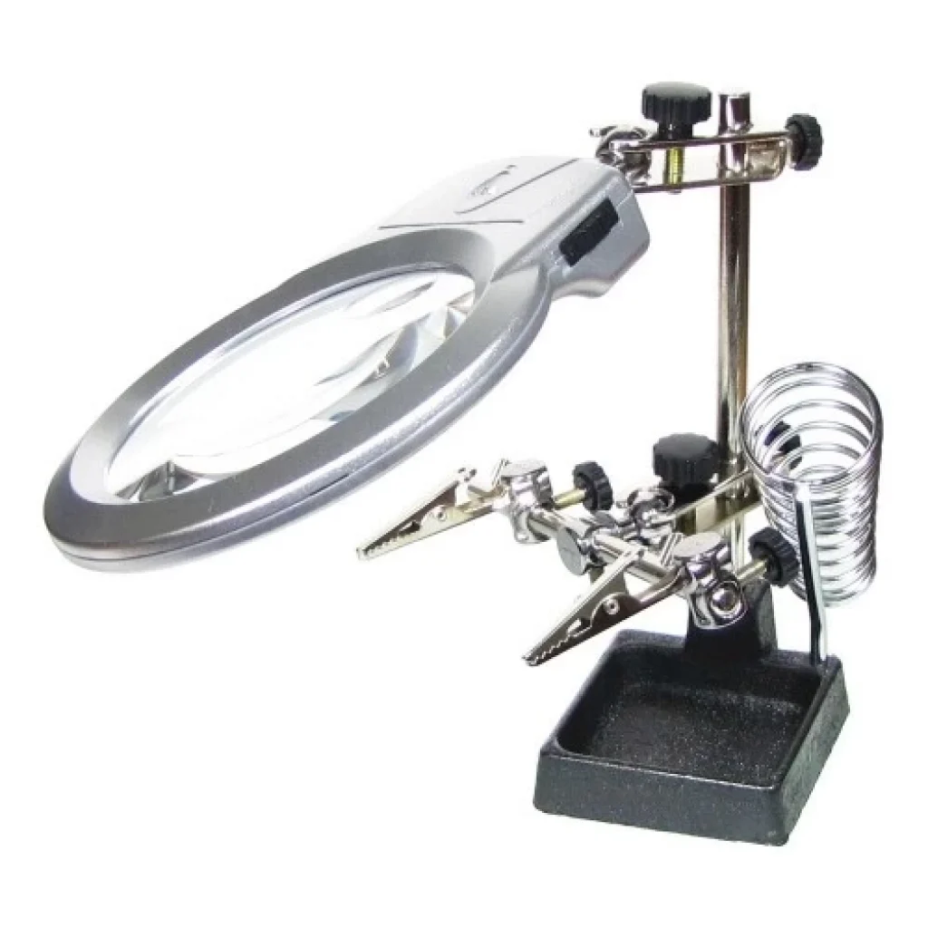 Ayarlanabilir Başlıklı Elektronikçi Yardım Lehim Standı Ile Ledli Büyüteç
