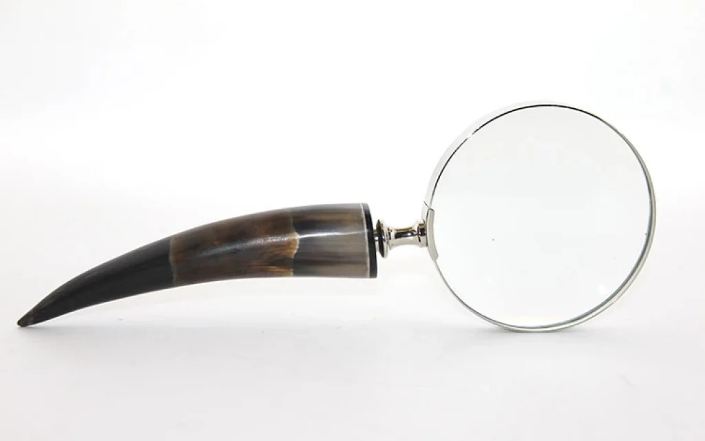 BOYNUZ BÜYÜTEC MODEL 8Ürün ÖzellikleriBoynuz Büyüteç Model 8, zarif bir tasarıma sahip şık bir dekoratif ve işlevsel üründür. Boynuzdan yapılmış sapı, estetik ve nostaljik bir hava yaratırken, büyüteç camı net bir görüntü sağlar. Hem ofis hem de ev dekorasyonunda kullanılabilir, aynı zamanda günlük kullanım için de idealdir. Boynuz malzeme, ürünün benzersizliğini artırarak doğal bir dokunuş sunar.Paket İçeriği1 Adet Boynuz Büyüteç Model 8