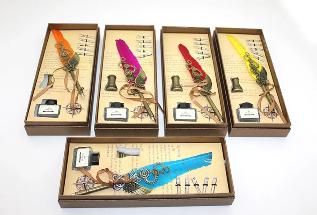 DIVIT HOKKA SETİ MODEL 2Ürün ÖzellikleriDivit Hokka Seti Model 2, renkli tüy ve zarif işlemeli tasarımıyla hem estetik hem de işlevsel bir yazı setidir. Tüy divit, ince işlemeleri ve renkli tüyüyle yazı yazmayı keyifli bir hale getirirken, hokka, mürekkebinizi zarif bir şekilde saklamanızı sağlar. Setin nostaljik ve zarif tasarımı, hem geleneksel yazı sanatlarına meraklı olanlar hem de özel hediye arayanlar için idealdir. Dekoratif ve işlevsel kombinasyonuyla masa üstünde de hoş bir görüntü sunar.Not: Ürün farklı renklerde mevcuttur ve stok durumuna göre karışık gönderim yapılmaktadır.Paket İçeriği1 adet Divit Hokka Seti Model 2