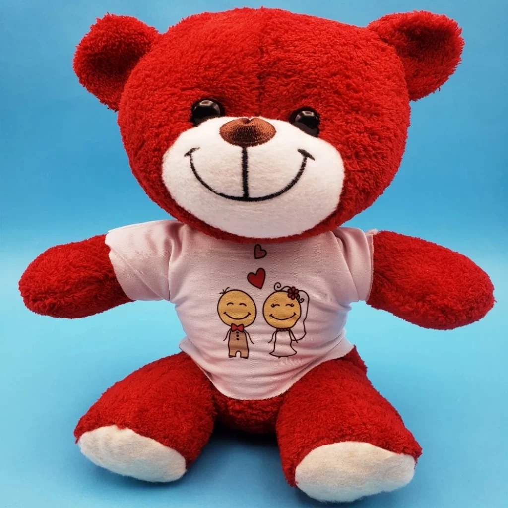 Gelin Damat Çift Baskılı Tişörtü Kırmızı Ayı