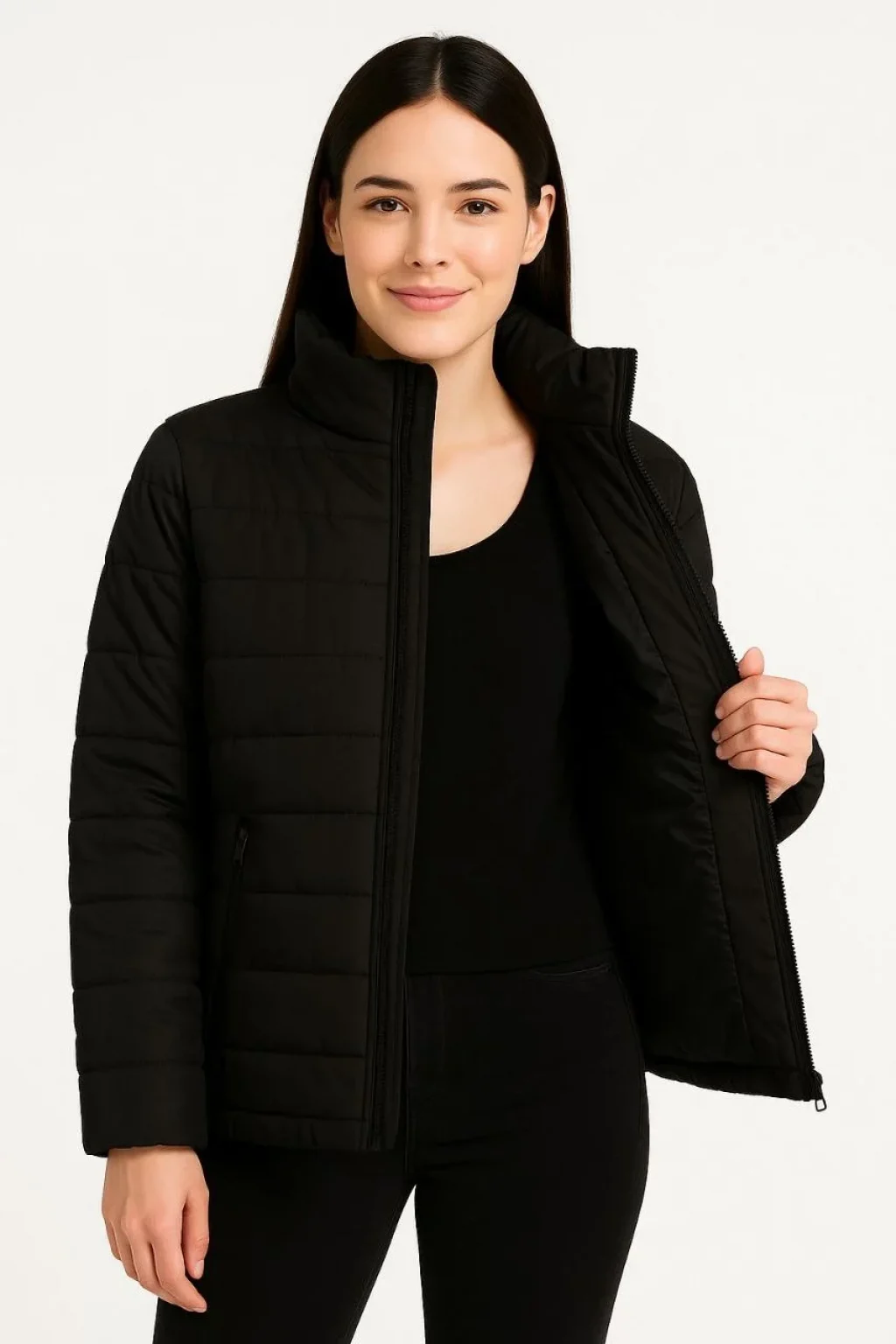 • Kadın Bomber Mont Ceket – Su İtici Kumaş, Kapitone Astarlı, Fermuarlı, Kışlık - Siyah